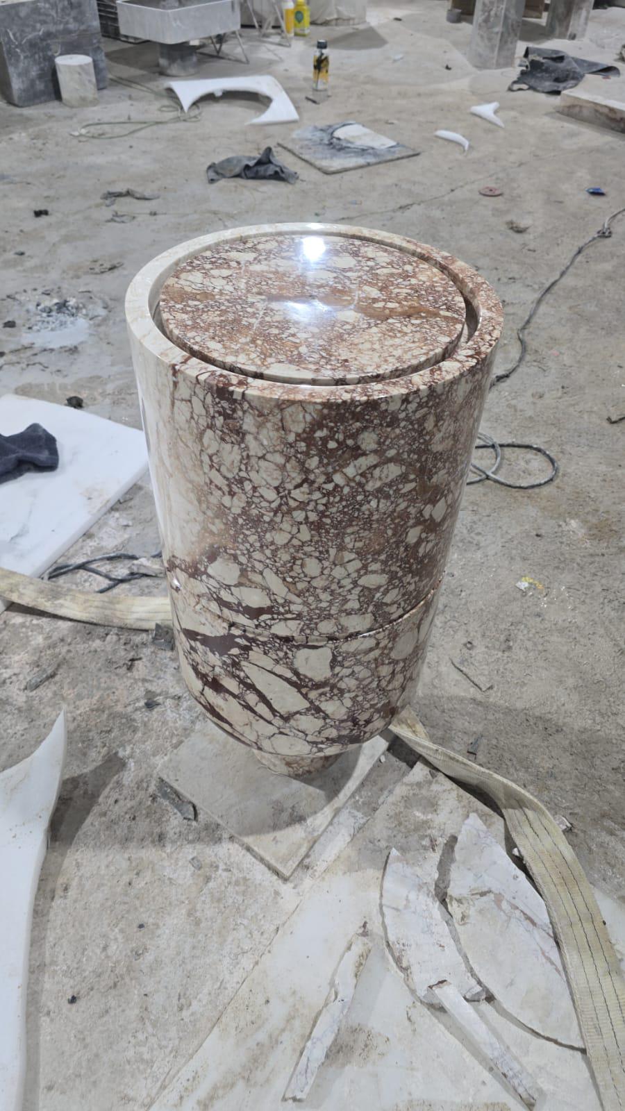 Handcrafted Cylindrical Marble Side Table