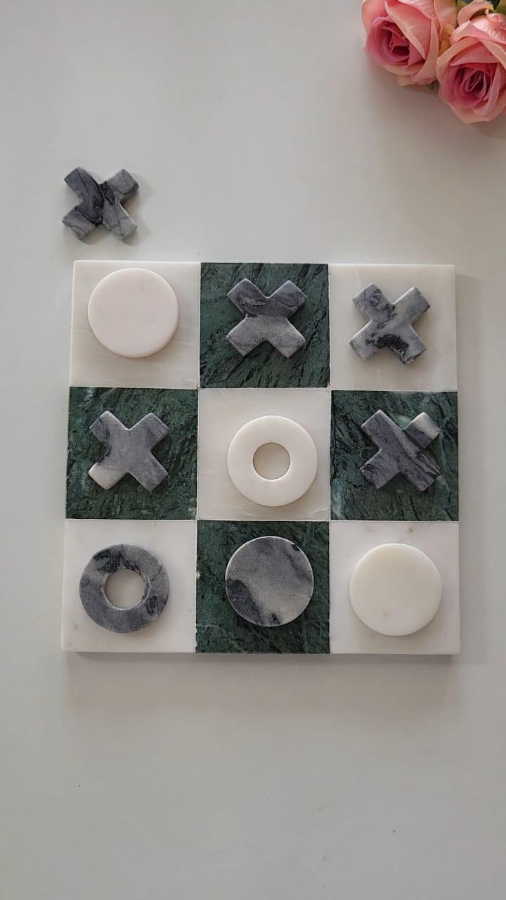 Green & White Marble Tic Tac Toe Decorative Game