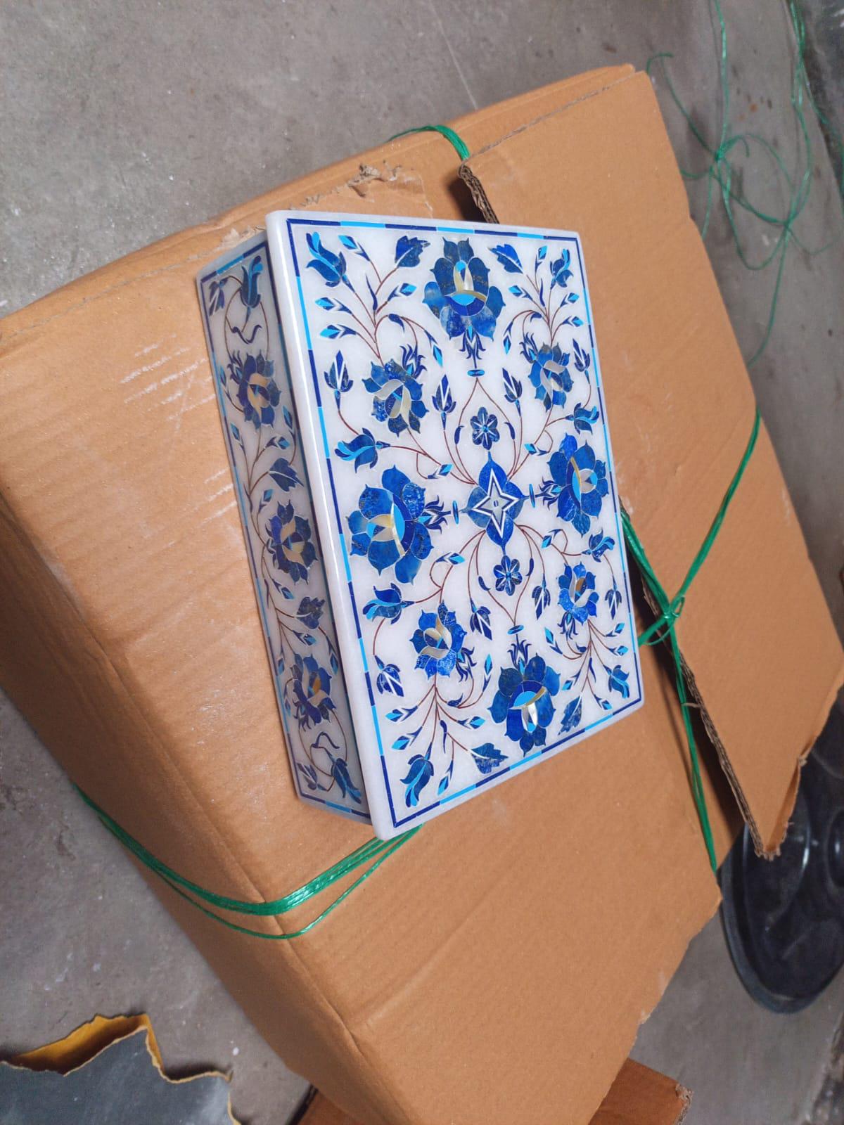 Blue Floral Marble Inlay Decorative Box