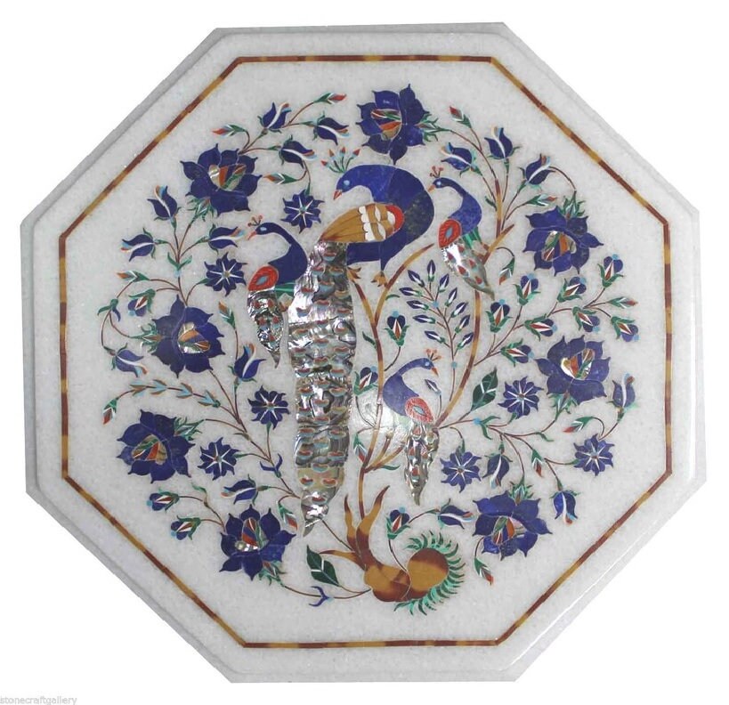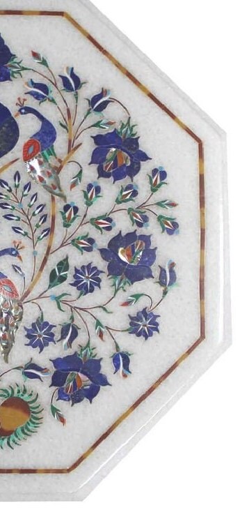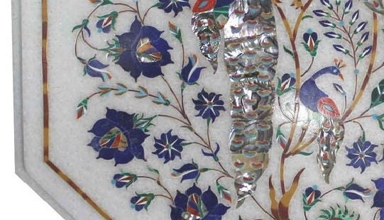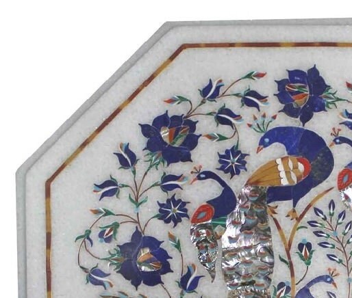 Marble Coffee Table Top Peacock Design Semi Precious Stone Inlay Work Center Table Floral Art for Living Room