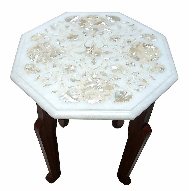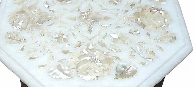 “Inlay work” is one of the most attractive art that done from marble. Same type of that adorns the Taj Mahal and other Mughal monuments. It is a closely protected traditional art and only a few expert exponents are available today. The delicate process involves cutting and engraving marble shapes manually. To start with, a predefined pattern e.g., floral design or geometrical design is engraved on the marble slab. Small pieces of marble of different shades are cut delicately to fit in these grooves precisely. These small pieces are then slipped in the grooves. There are many varieties of colored stone available for utilization in marble inlay work: malachite, cornelian, jasper, mother of pearl, abalone shell, lapis lazuli, agnate, coral, turquoise and tiger eye to name just a few. The grooves are filled with their precisely corresponding shapes of colored stone and secured in place with a white putty made from oil, and wax. Once the design is completely dry, the piece is polished with a mixture of sand, water and emery paper to give a shiny smooth finish. Apart from marble, many other materials can also be used.