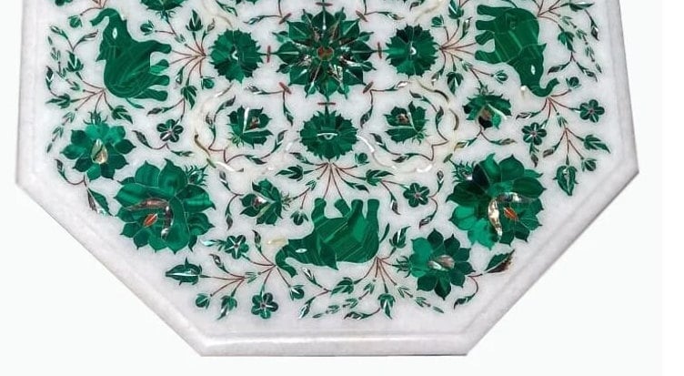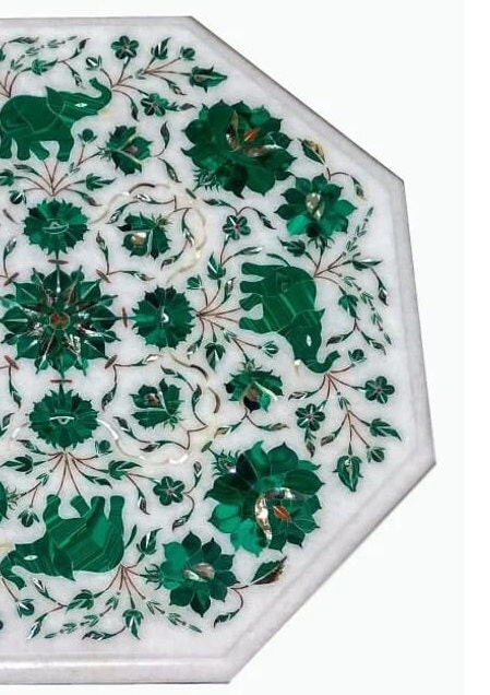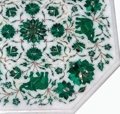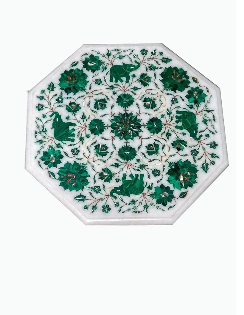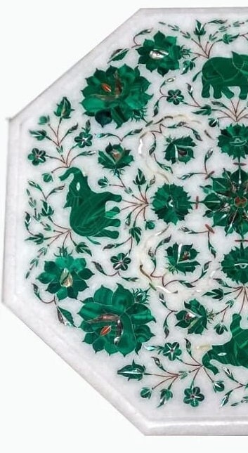 Marble Coffee Table Top Inlay Art Malachite Semi Precious Stones Handmade Pietra Dura Work Home Decor