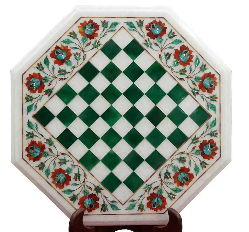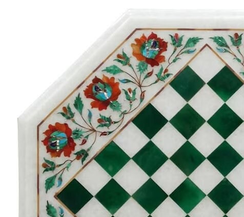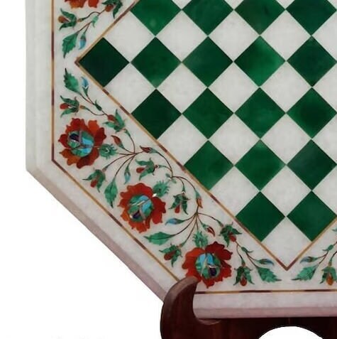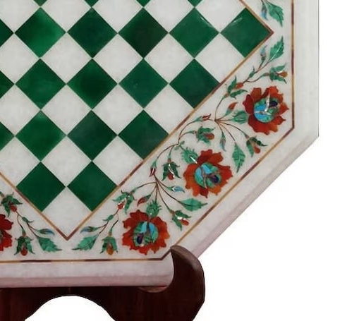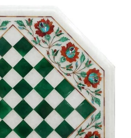 Marble Chess Table Top Handmade Inlay Work Carnelian Semi Precious Stones Art