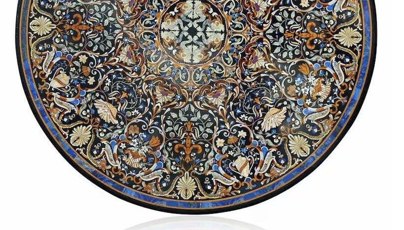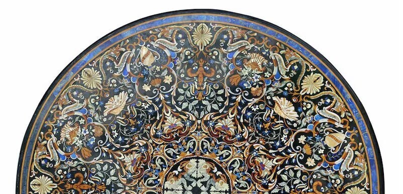 Marble Dining Table Top Multi Color Semi Precious Stone Inlay Art Work Handmade Pietra Dura Decorative For Home Furniture