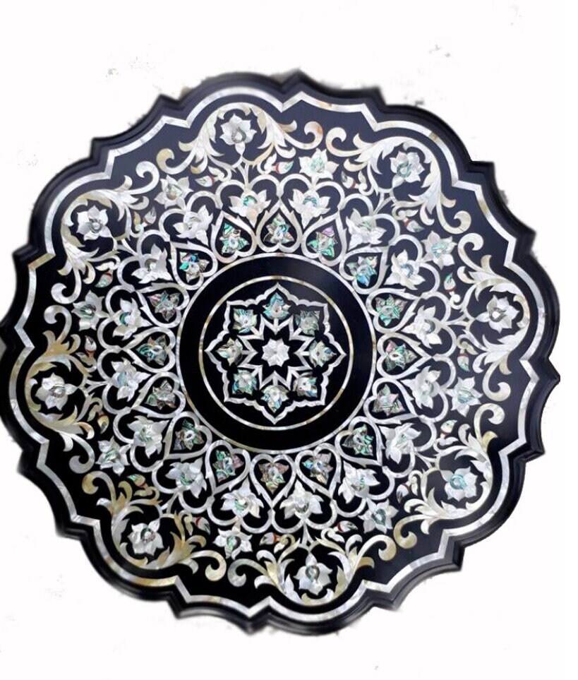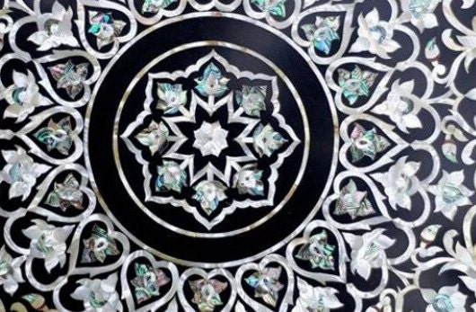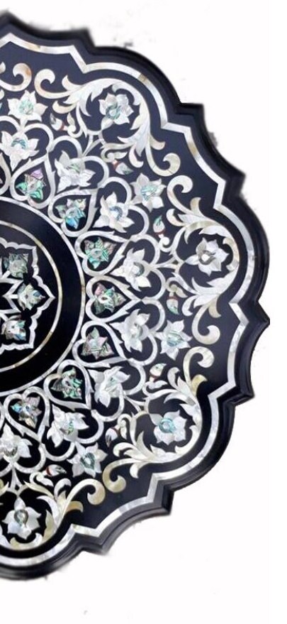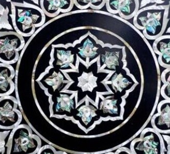 “Inlay work” is one of the most attractive art that done from marble. Same type of that adorns the Taj Mahal and other Mughal monuments. It is a closely protected traditional art and only a few expert exponents are available today. The delicate process involves cutting and engraving marble shapes manually. To start with, a predefined pattern e.g., floral design or geometrical design is engraved on the marble slab. Small pieces of marble of different shades are cut delicately to fit in these grooves precisely. These small pieces are then slipped in the grooves. There are many varieties of colored stone available for utilization in marble inlay work: malachite, cornelian, jasper, mother of pearl, abalone shell, lapis lazuli, agnate, coral, turquoise and tiger eye to name just a few. The grooves are filled with their precisely corresponding shapes of colored stone and secured in place with a white putty made from oil, and wax. Once the design is completely dry, the piece is polished with a mixture of sand, water and emery paper to give a shiny smooth finish. Apart from marble, many other materials can also be used.