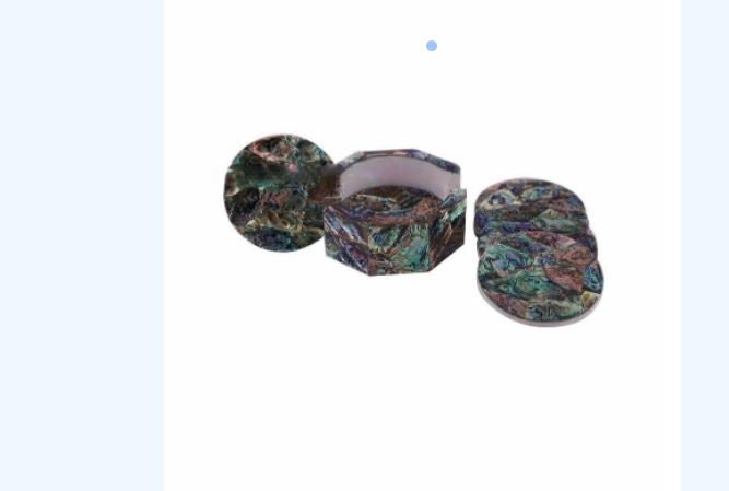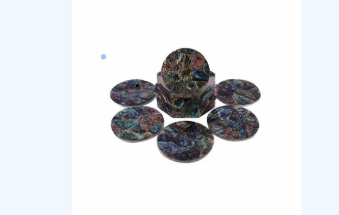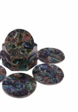 Marble Coaster Set Multi Semi Precious Stones Pietra Dura Overlay Work