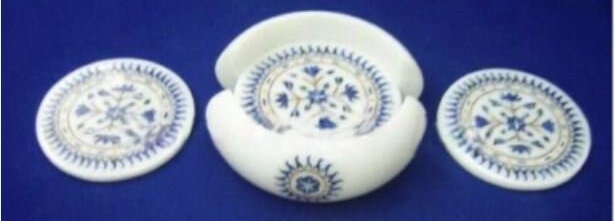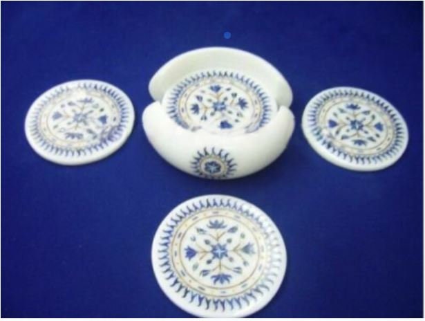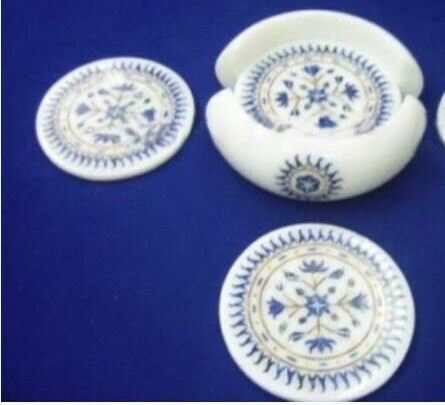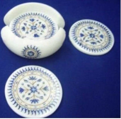 Lapis Marble Coaster Set Handmade Semi Precious Stone Pietra Dura Work Inlay Art Home Decorative Gift