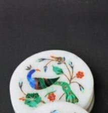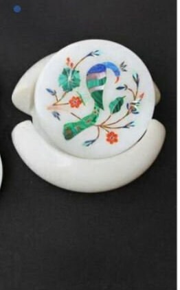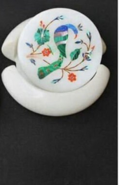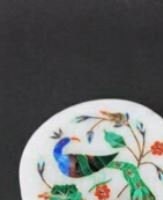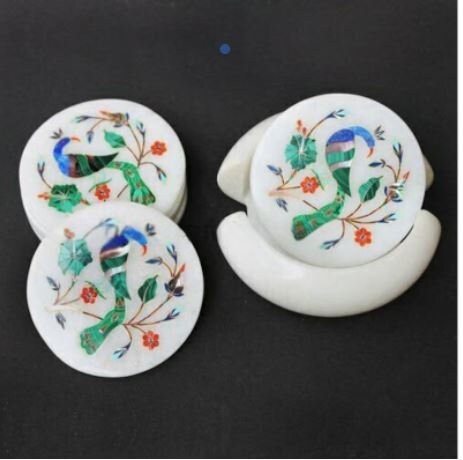 Marble Coaster Set Handmade Peacock Design Semi Precious Stone Inlay Art