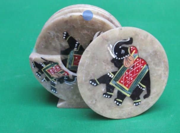 Marble Coaster Set Drinkware Handmade Elephant Design Semi Precious Stone Pietra Dura Work Inlay Art Home Decorative Gifts