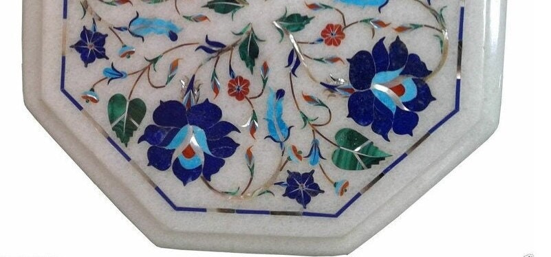 Marble Corner end Table Top Semi Precious stones floral inlay Pietra Dura work Home Room Decor