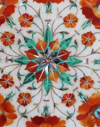 · Inlay art on delicate precious stone began in the workshops of Florence in Italy around the end of the 16th century. This was known as PIETRA DURA.(Pietra= Stone, Dura= Hard). Of all the Mughal Emperors, Shah Jahan was the greatest patron of architecture in India. For him no amount of money or time was too much to create enduring, everlasting architectural beauty and through it be remembered always. It is in his buildings that one feels most compelled to make the connection between Mughal art and pietra dura. The Taj Mahal, the cenotaphs of the Emperor and his wife, the main floor and the surrounding marble railings bear very close resemblances to the pietra dura form.