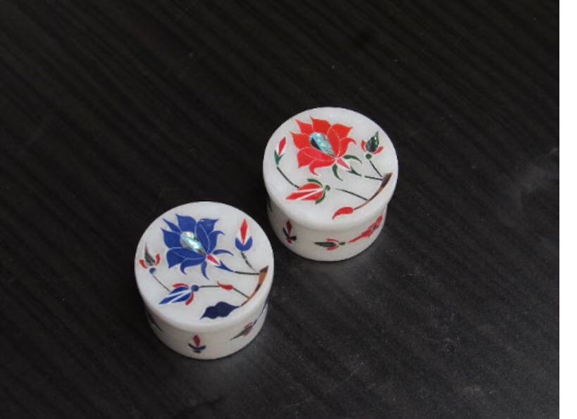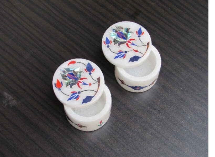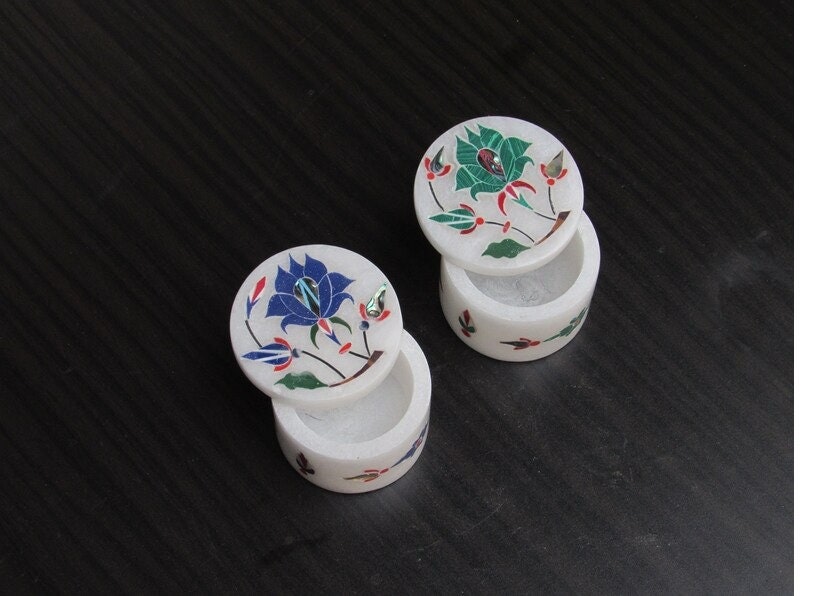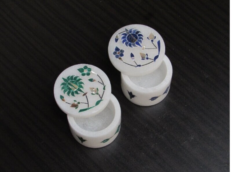 Marble Ring Box Lapis Malachite Semi Precious Stone Inlay Handmade Gift