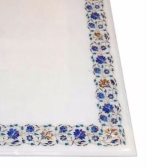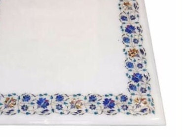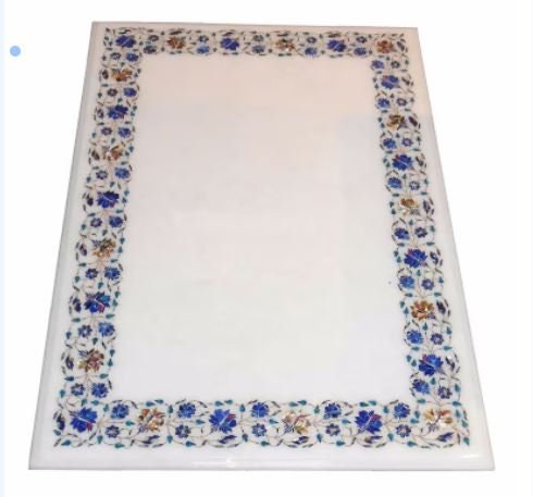 Marble Table Top Semi Precious Stones Inlay Handmade Pietra Dura Work Decor