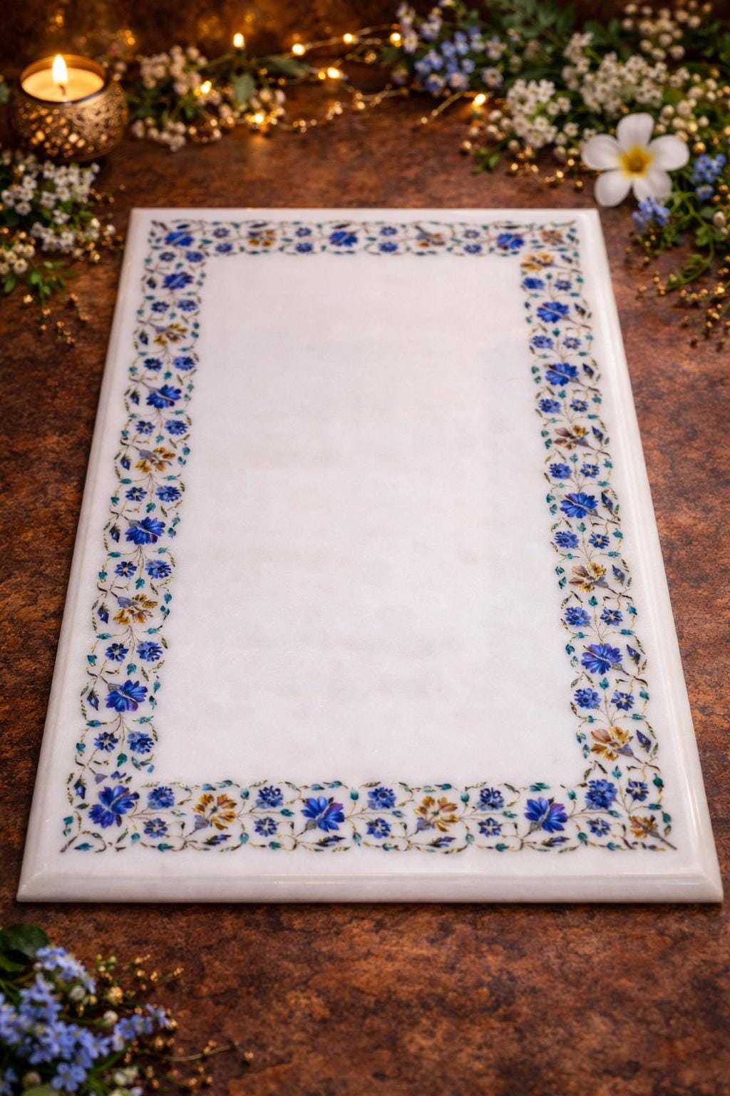 Features Pietra Dura art, showcasing intricate designs.