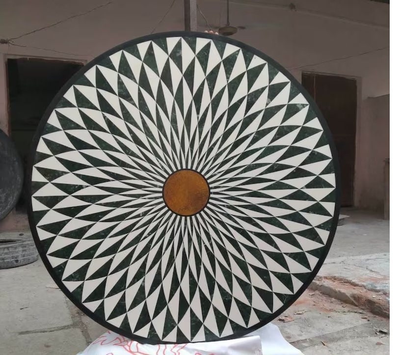 Marble Center Round Table Top Handmade Semi precious stones Handmade Work Art