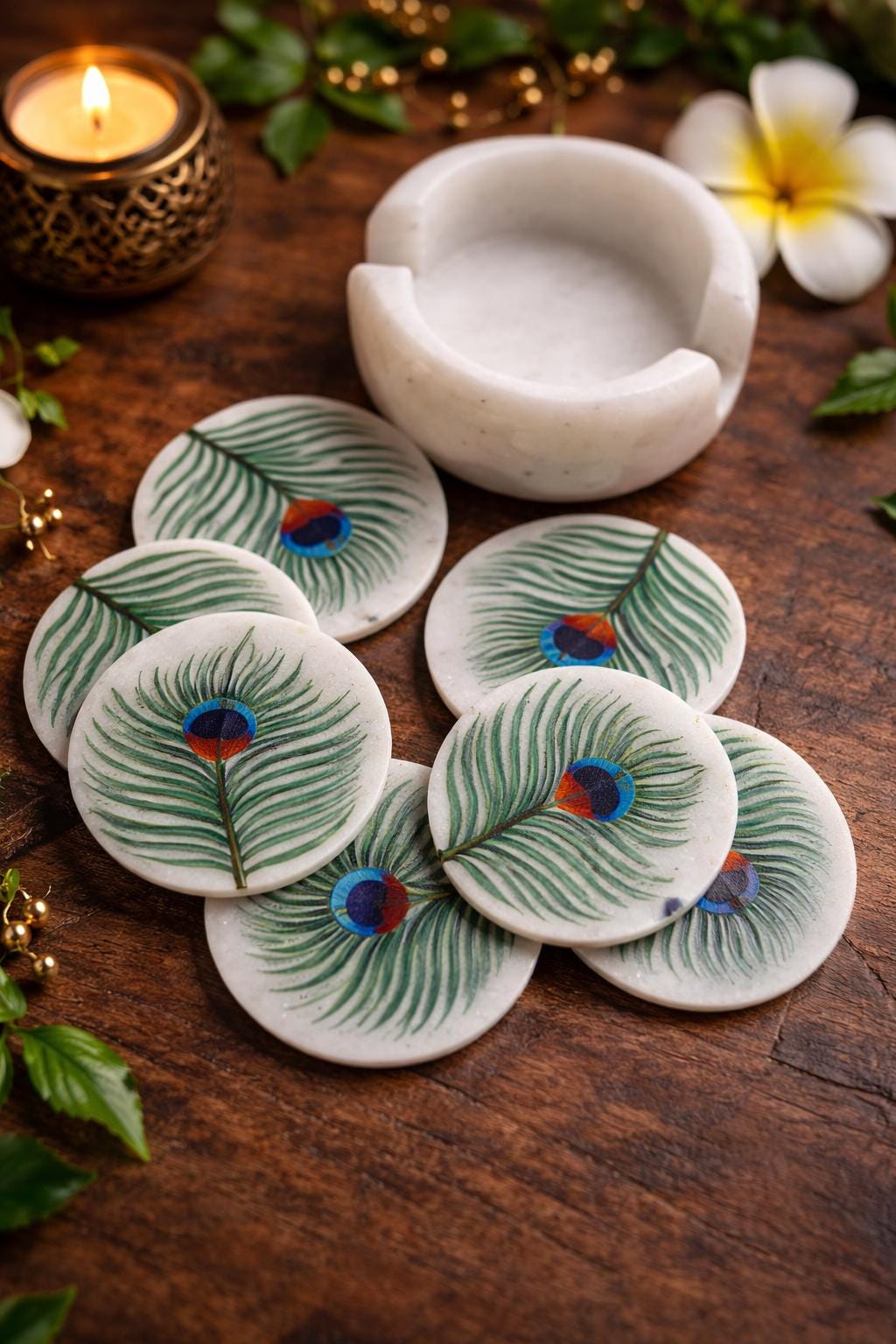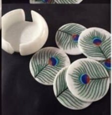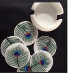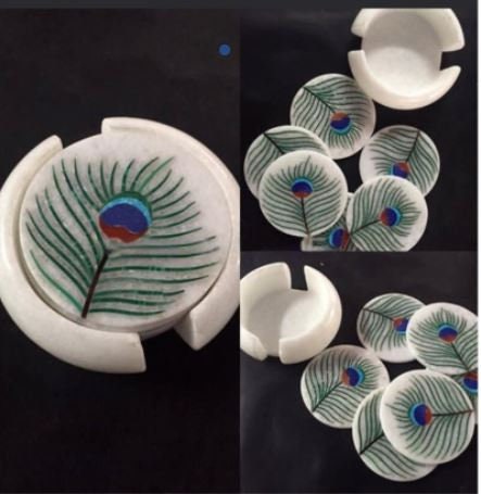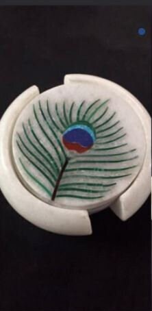 Marble Coaster Set Handmade Multi Semi Precious Stones Inlay Pietradura Art Work Home Decor