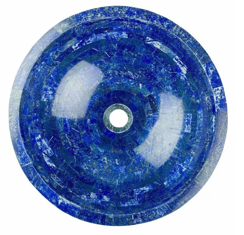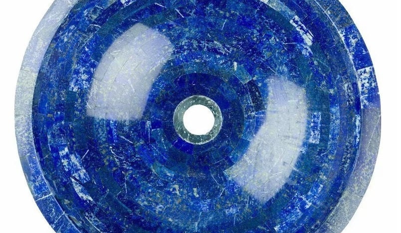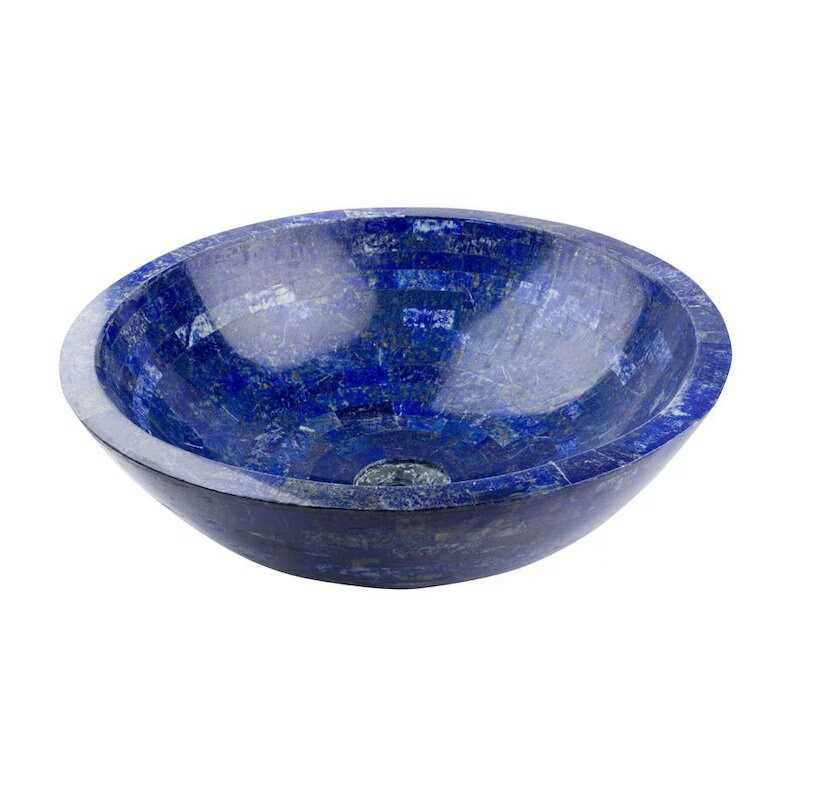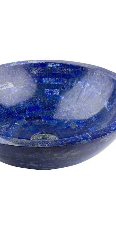 Transform your bathroom into a work of art with this handcrafted Lapis Lazuli gemstone sink. Made from authentic Lapis Lazuli pieces inlaid in natural marble, this basin showcases deep royal blue tones, golden pyrite flecks, and subtle white calcite patterns — a combination prized for centuries in luxury interiors.