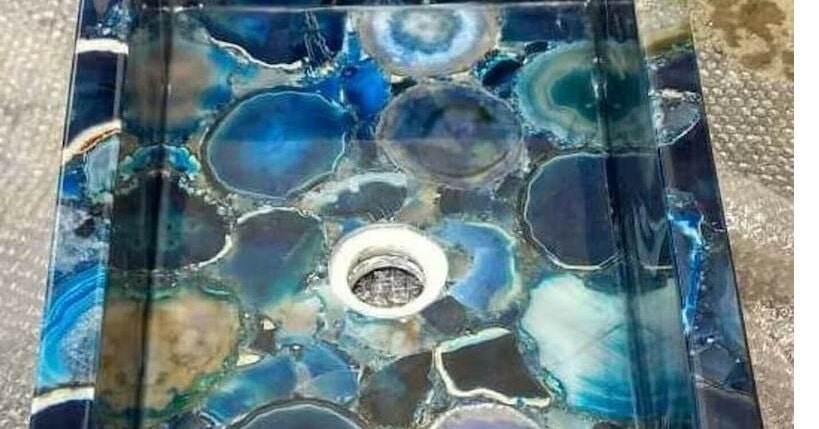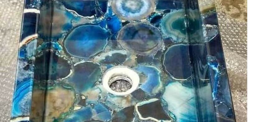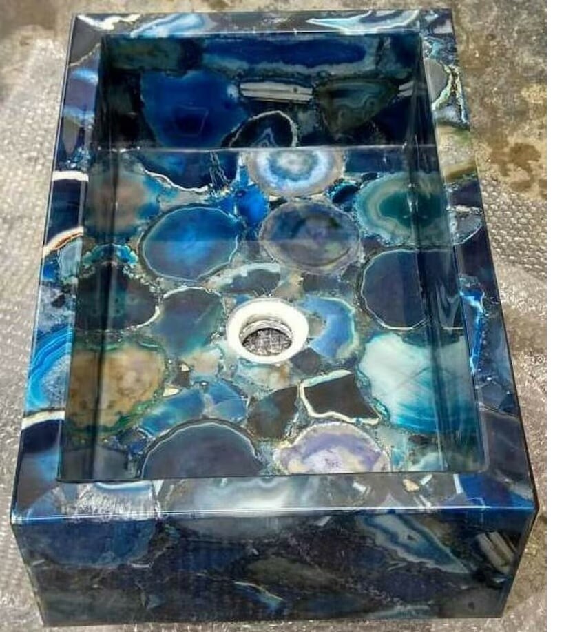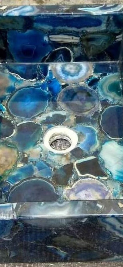 This rectangular vessel sink is a true statement of luxury and craftsmanship, perfect for modern bathrooms, spa-style interiors, boutique hotels, and elegant powder rooms. The rich blue tones and natural translucency of agate add depth, character, and elegance to any space.