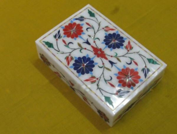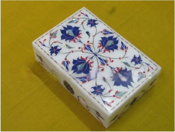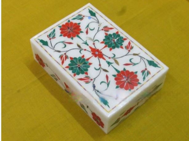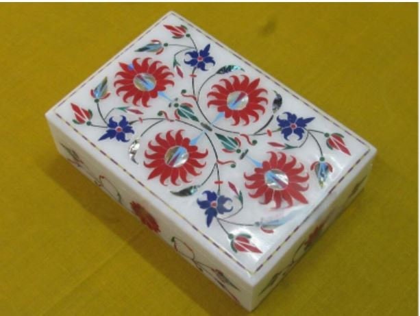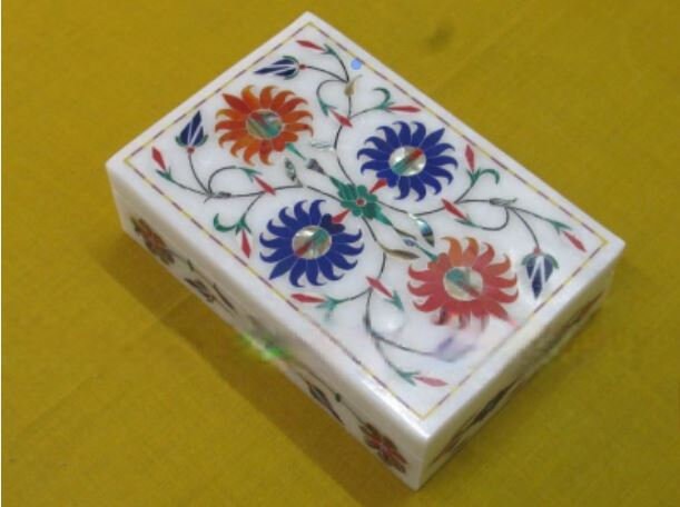 Marble Jewelry Box Semi Precious Stone Pietra Dura Art Work Handmade Home Decor For Gifts