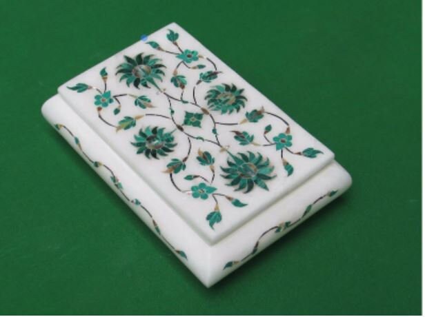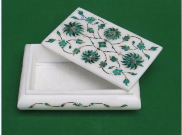 Jewelry Box Italian Marble Malachite Semi Precious Stone Inlay Handmade