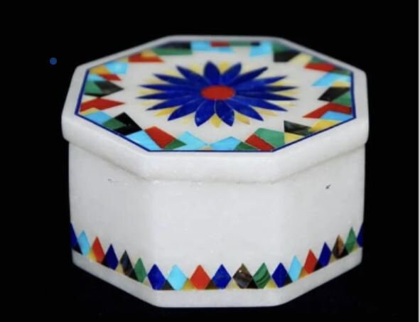 4" x 4" x 2" Marble Jewelry Ring Box Semi Precious Stones Inlay Handmade Home Decor Gifts