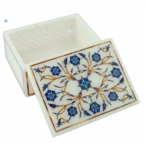 4" x 3" x 2" Marble Jewelry Box Floral Inlay Handmade