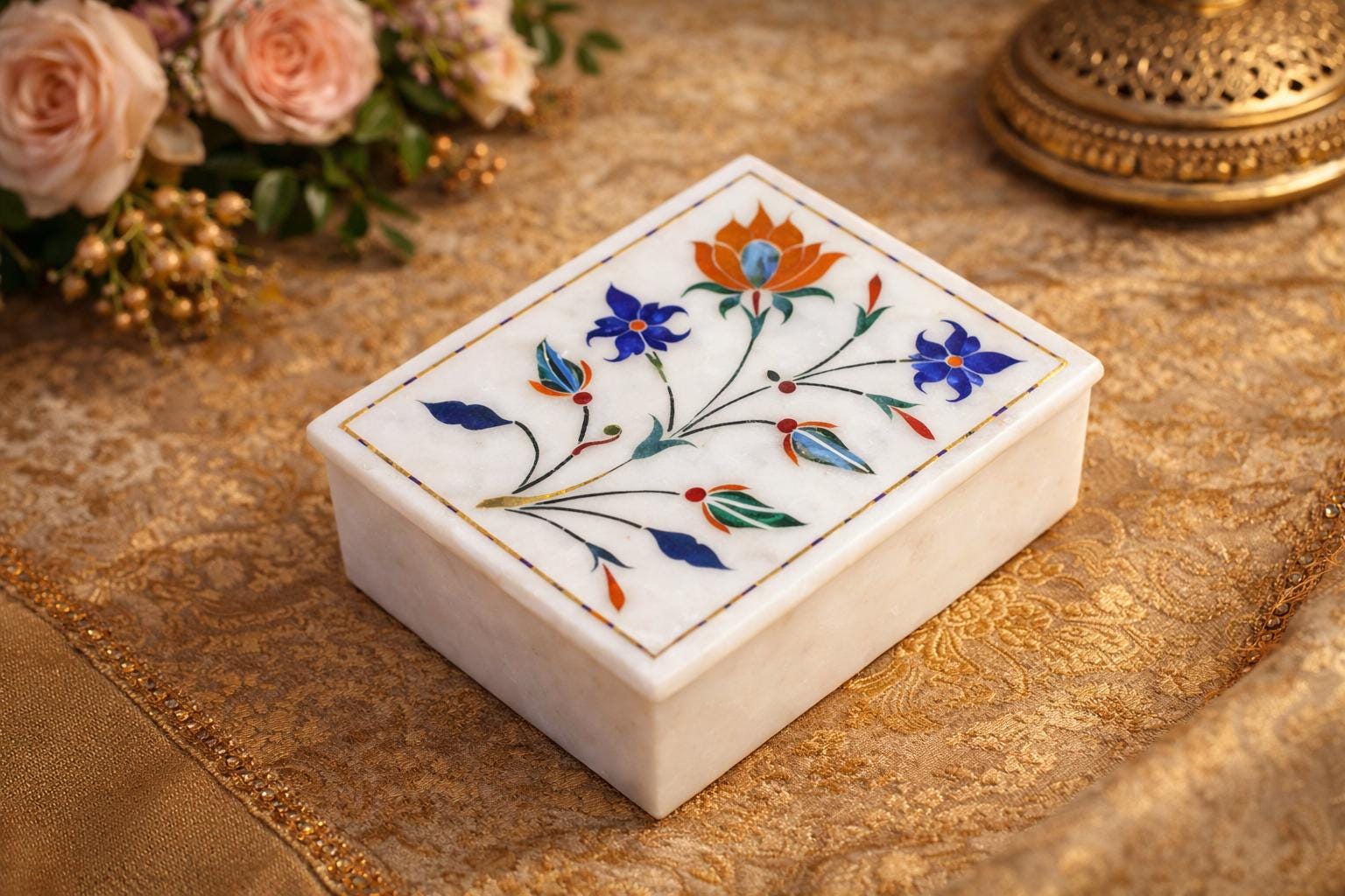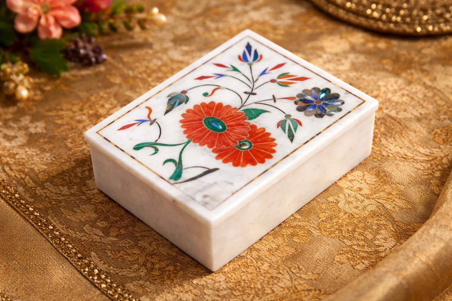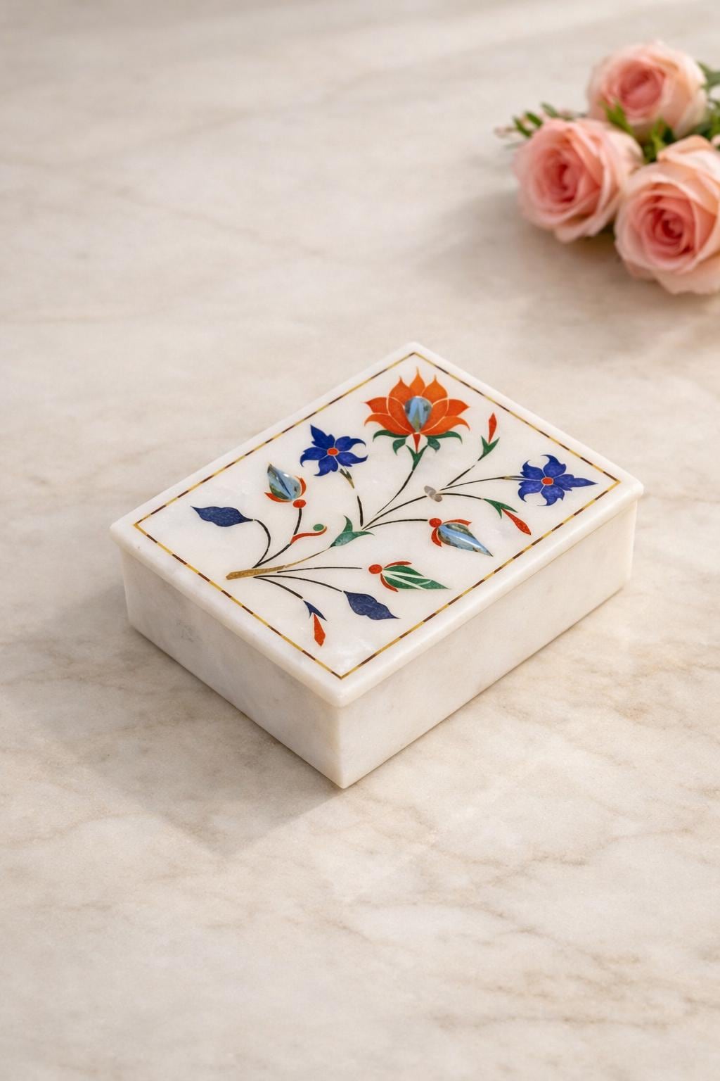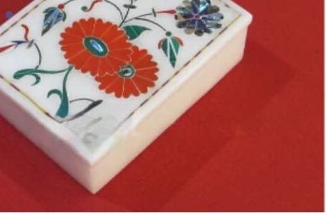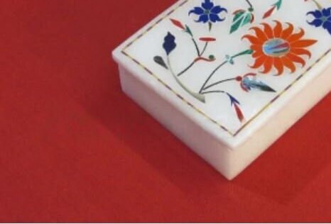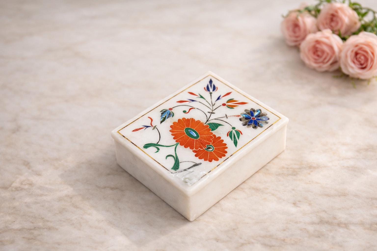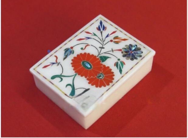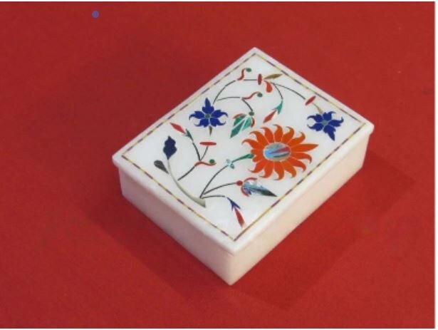 Marble Jewelry Box Semi Precious Stones Floral Inlay Art Work Handmade Home Decor Gift
