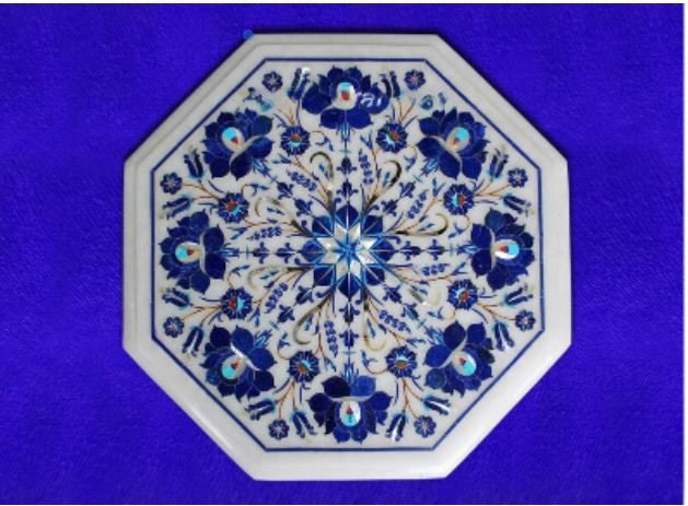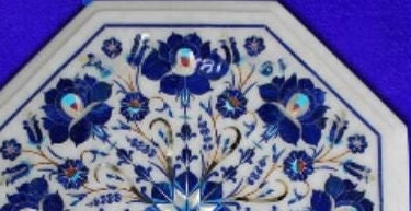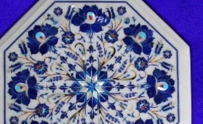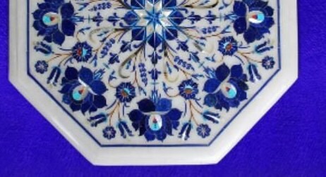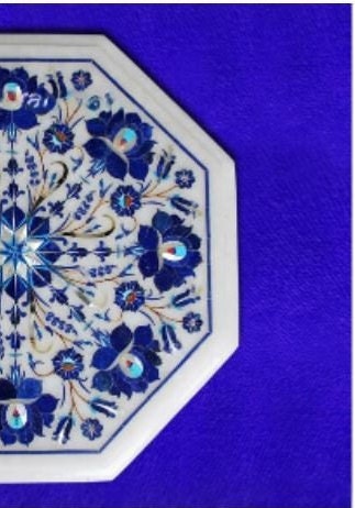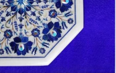 Marble Corner Table Top Semi Precious Stones Handmade Lapis Lazuli Inlay Work Home Decor