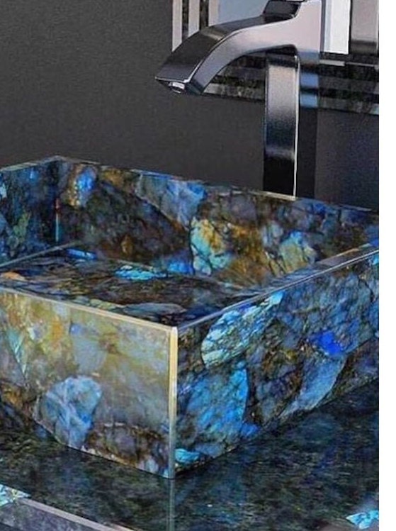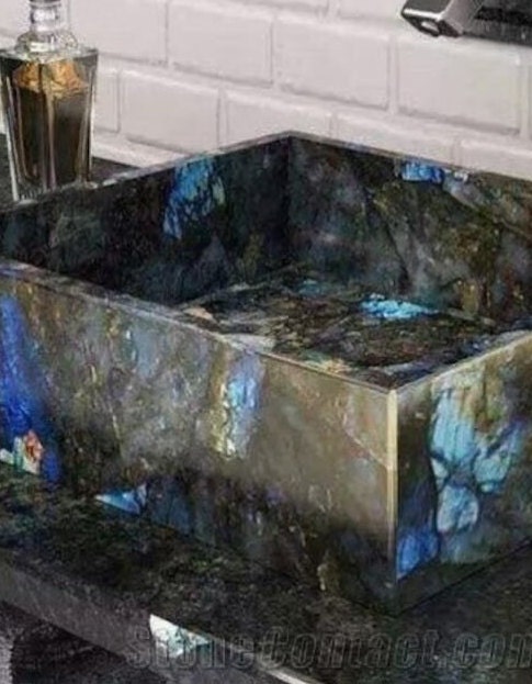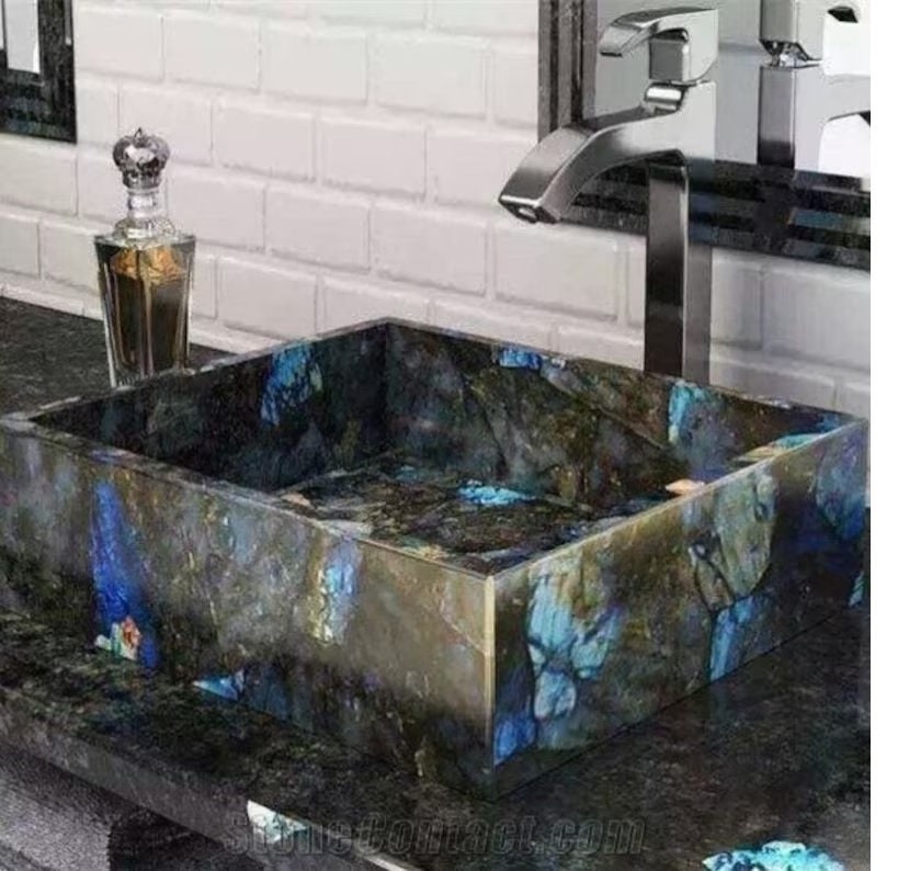 Labradorite Stone Washbasin Rectangle Design Kitchen Accessories Vessel Bathroom Decor