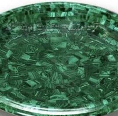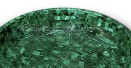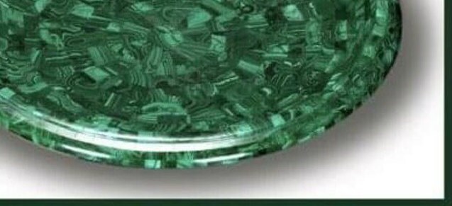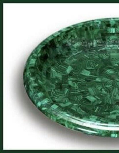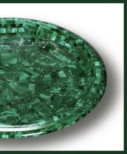Description of the product: Marble fruit bowl adorned with malachite semi-precious stones.