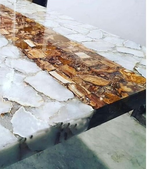 Natural white Agate stone with golden Petrified /Marble Coffee,Dinning Table Top, Handmade Art Interior Furniture Decor