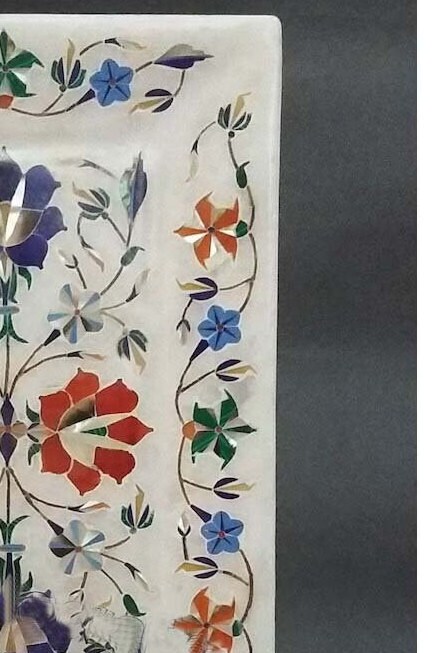 · Inlay art on delicate precious stone began in the workshops of Florence in Italy around the end of the 16th century. This was known as PIETRA DURA.(Pietra= Stone, Dura= Hard). Of all the Mughal Emperors, Shah Jahan was the greatest patron of architecture in India. For him no amount of money or time was too much to create enduring, everlasting architectural beauty and through it be remembered always. It is in his buildings that one feels most compelled to make the connection between Mughal art and pietra dura. The Taj Mahal, the cenotaphs of the Emperor and his wife, the main floor and the surrounding marble railings bear very close resemblances to the pietra dura form.