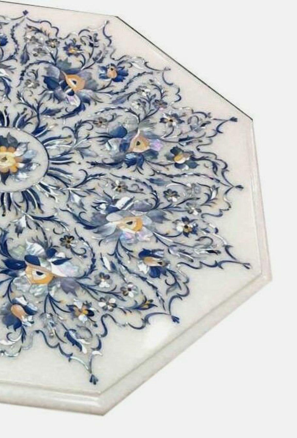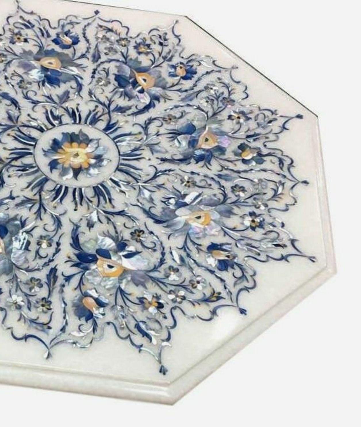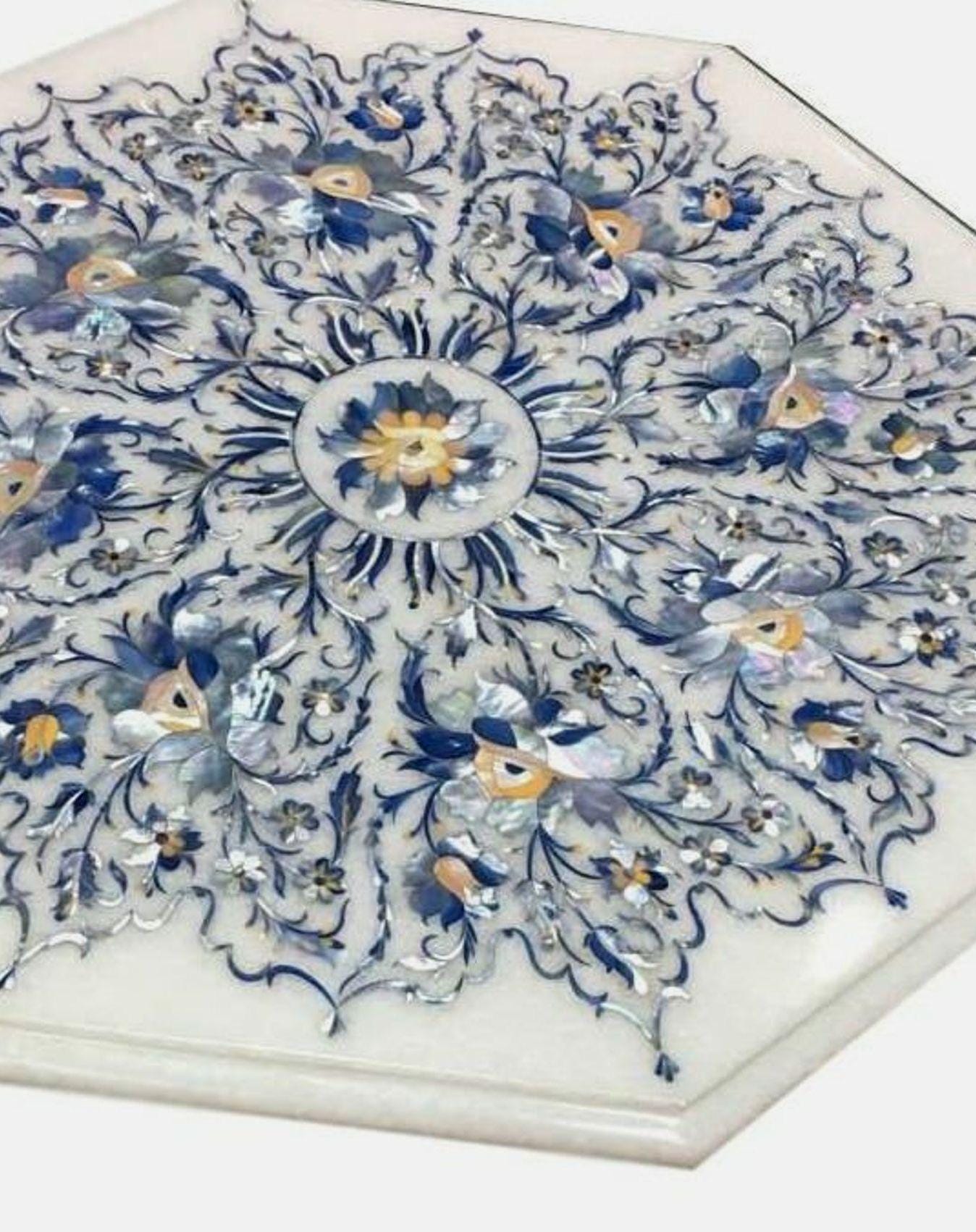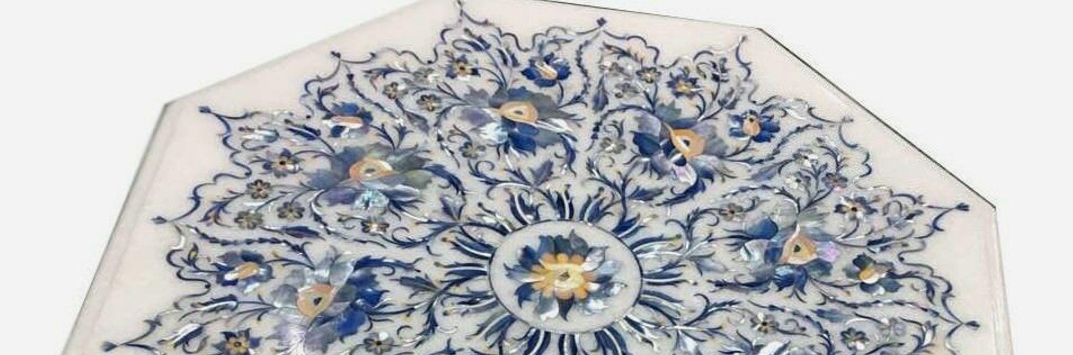 Inlay work is a decorative technique where small pieces of materials like wood, metal, stone, or shells are set into the surface of an object to create intricate patterns or designs. The materials used for inlay are usually different in color or texture from the base material, making the design stand out. This art form is often seen in furniture, jewelry, flooring, and architectural elements. In marble inlay work, for example, semi-precious stones are meticulously cut and embedded into the marble surface to form beautiful patterns, often seen in tabletops and decorative panels. The process requires skilled craftsmanship to ensure the pieces fit together perfectly and are flush with the surface.