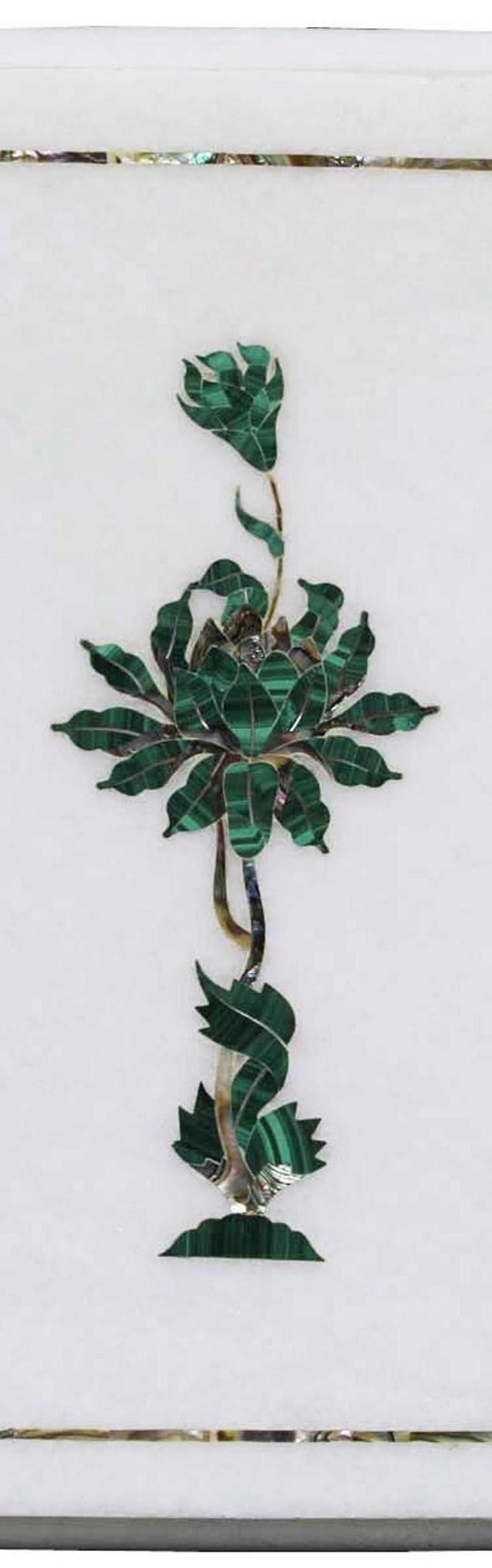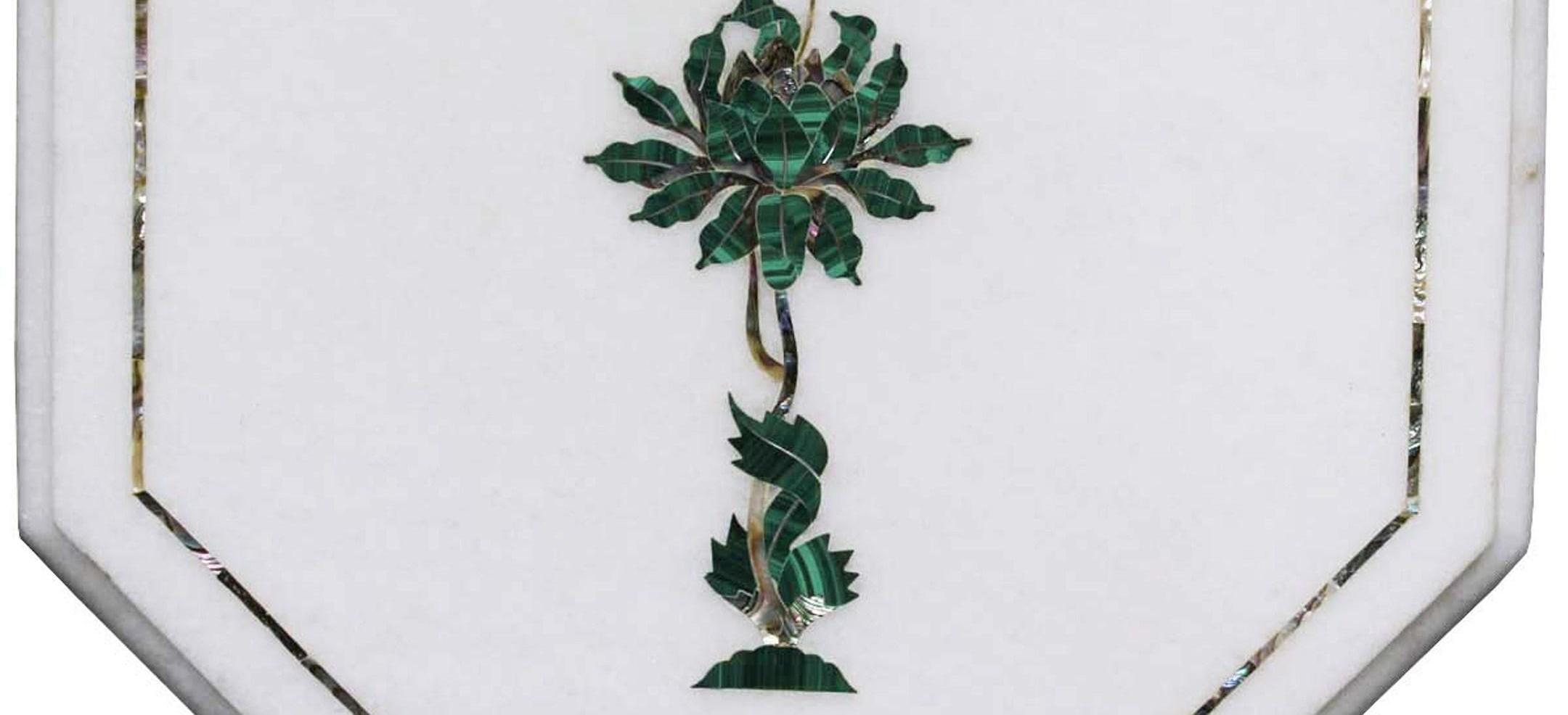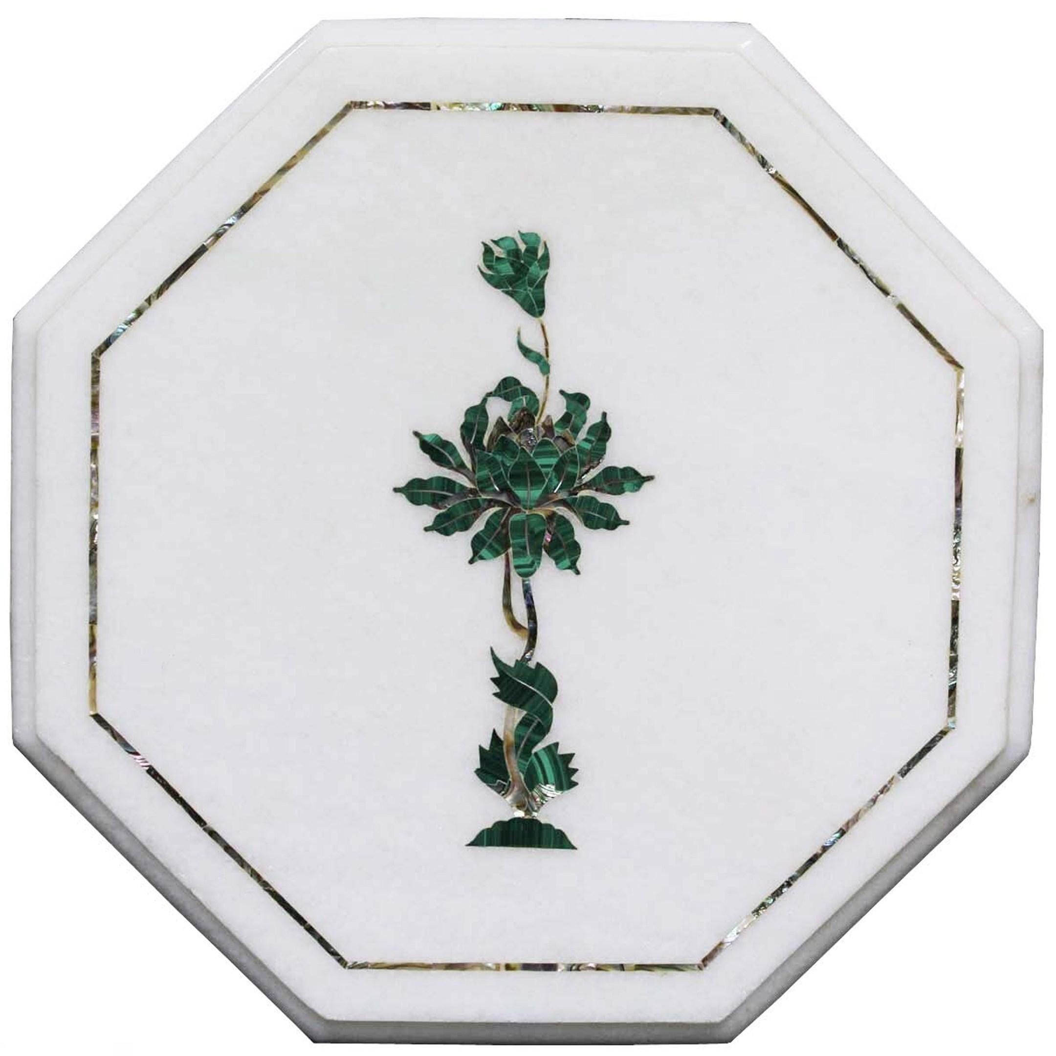Octagon Marble Inlay Table Top with Green Malachite Stone Floral Design