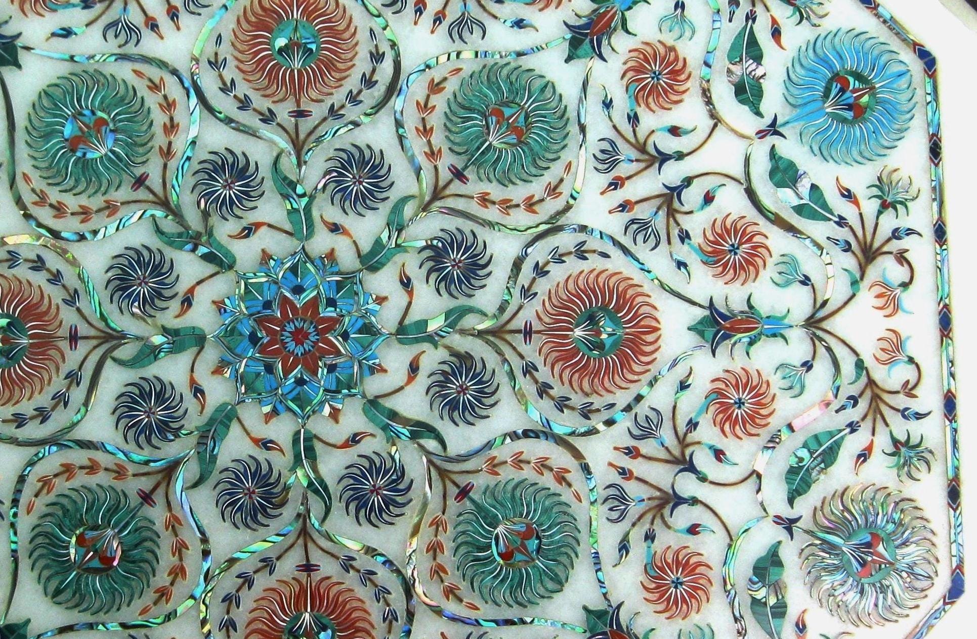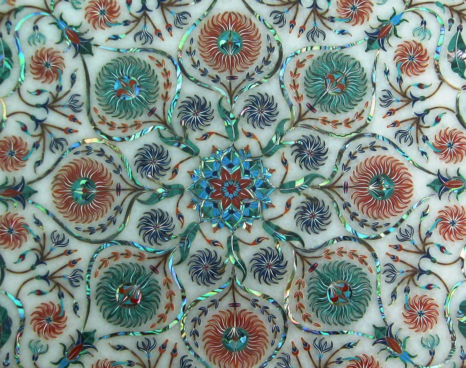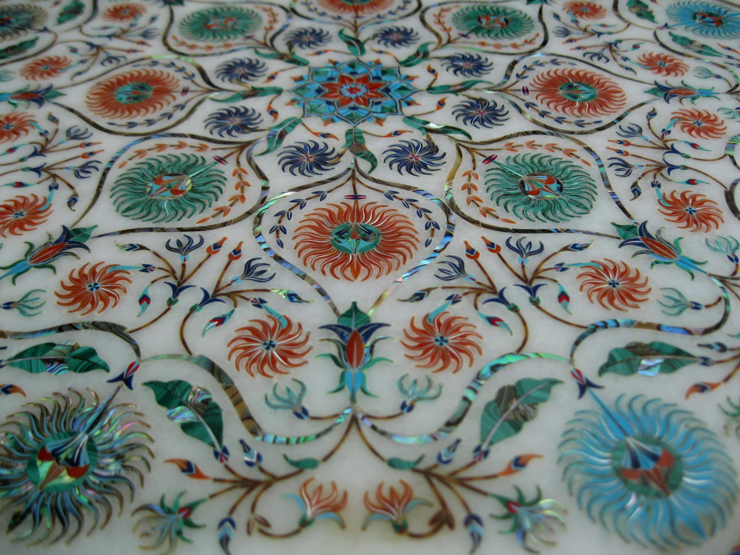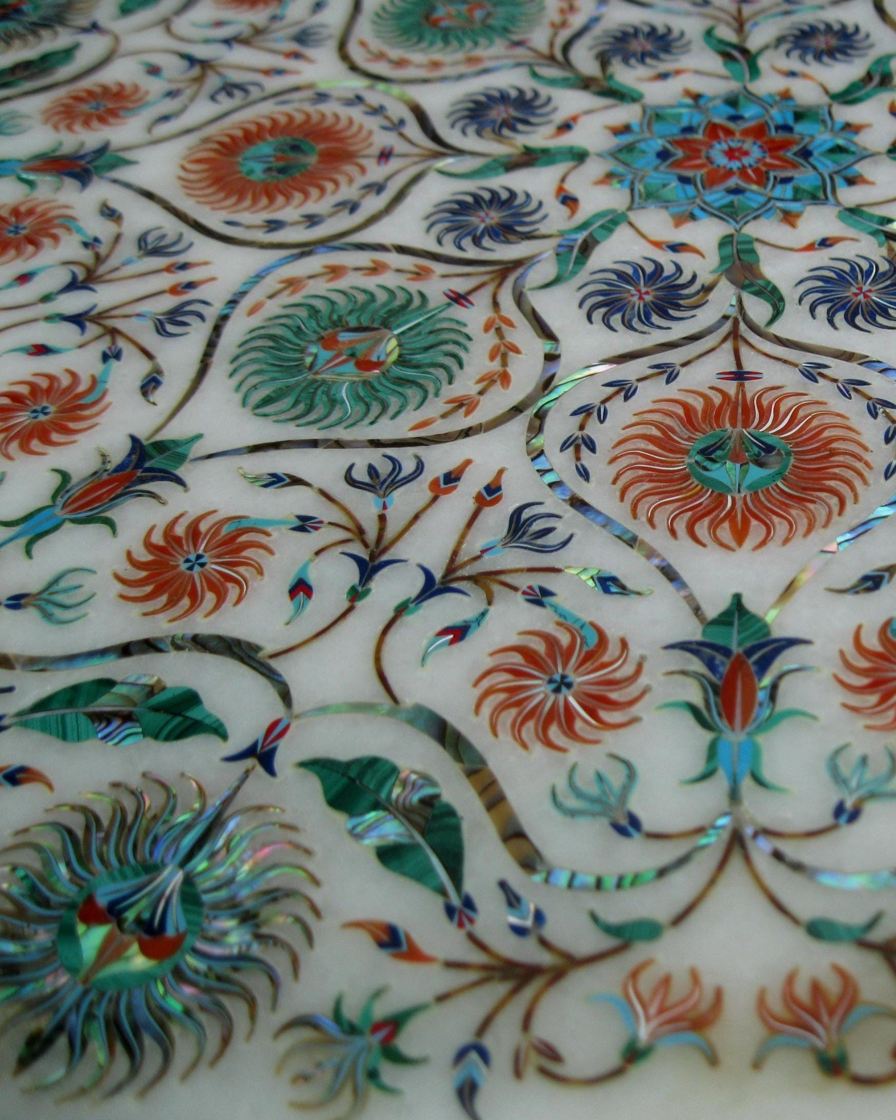 Features Pietra Dura art, showcasing intricate designs.