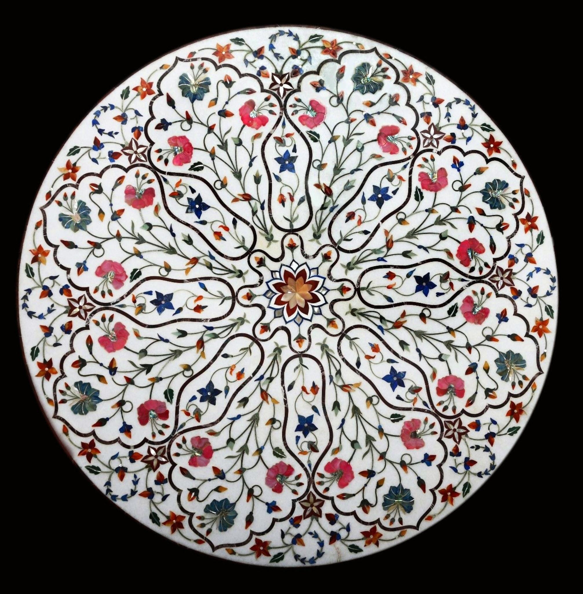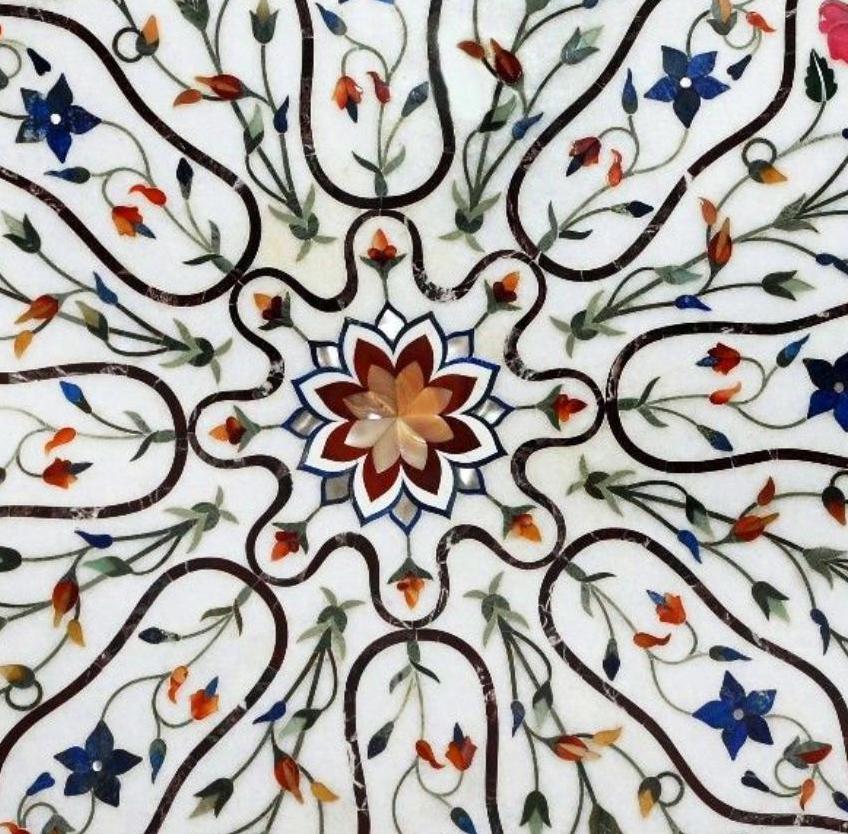 Inlay work is a decorative technique where small pieces of materials like wood, metal, stone, or shells are set into the surface of an object to create intricate patterns or designs. The materials used for inlay are usually different in color or texture from the base material, making the design stand out. This art form is often seen in furniture, jewelry, flooring, and architectural elements. In marble inlay work, for example, semi-precious stones are meticulously cut and embedded into the marble surface to form beautiful patterns, often seen in tabletops and decorative panels. The process requires skilled craftsmanship to ensure the pieces fit together perfectly and are flush with the surface.