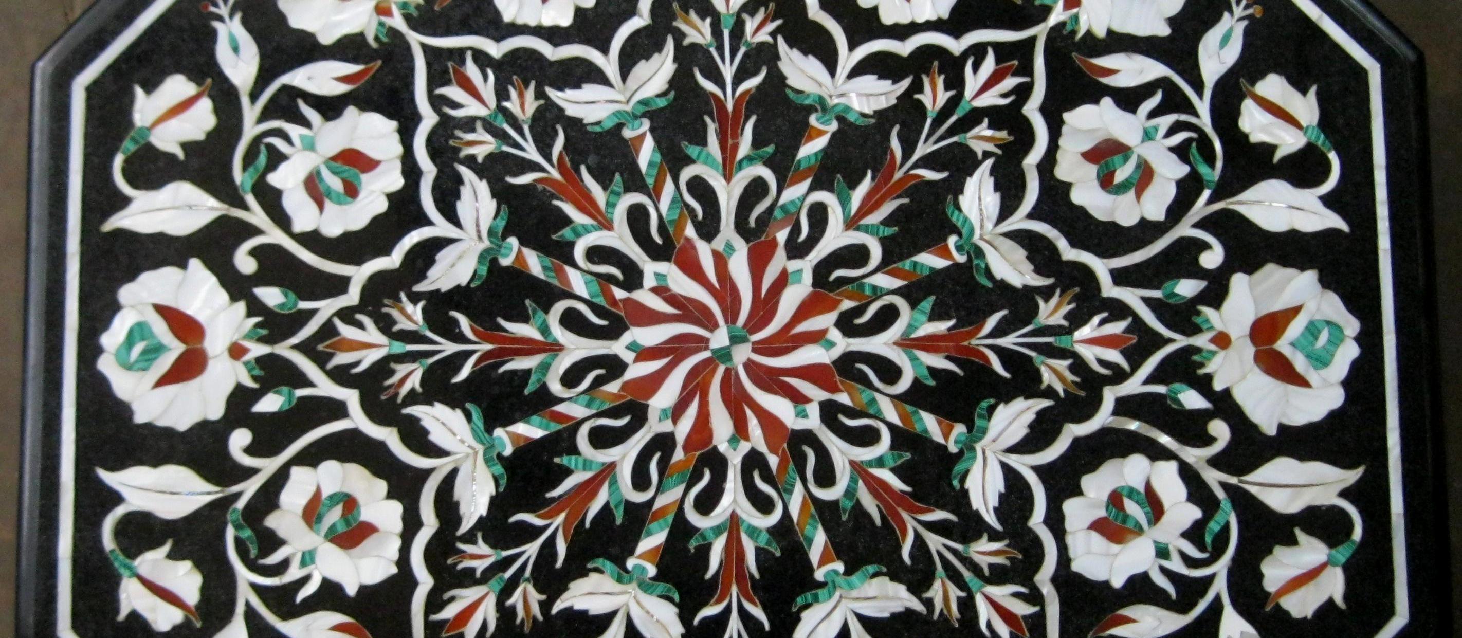 Features Pietra Dura art, showcasing intricate designs.