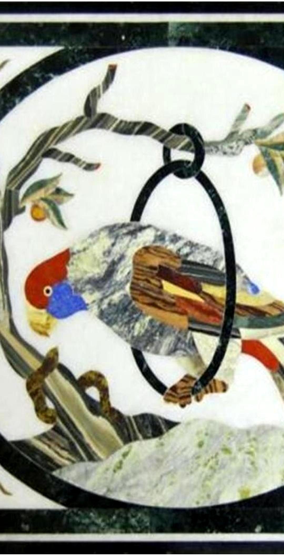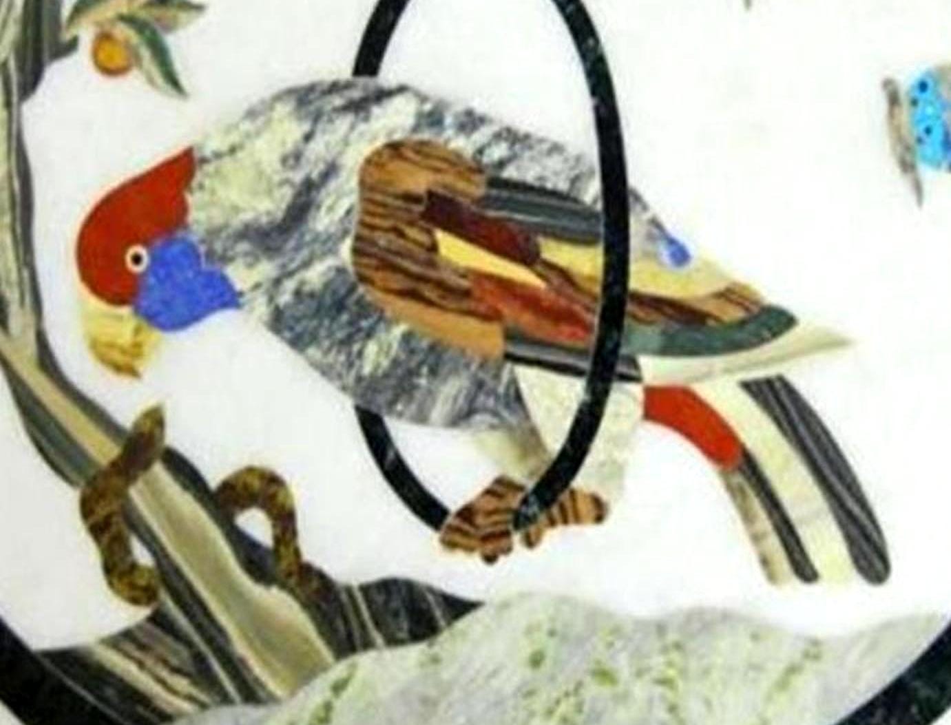 Handmade Marble Table Top: Parrot Inlay, Pietra Dura Art