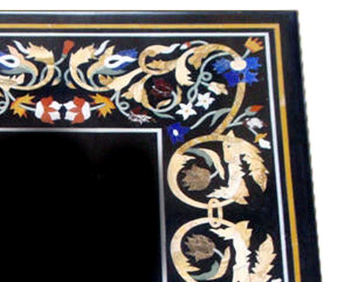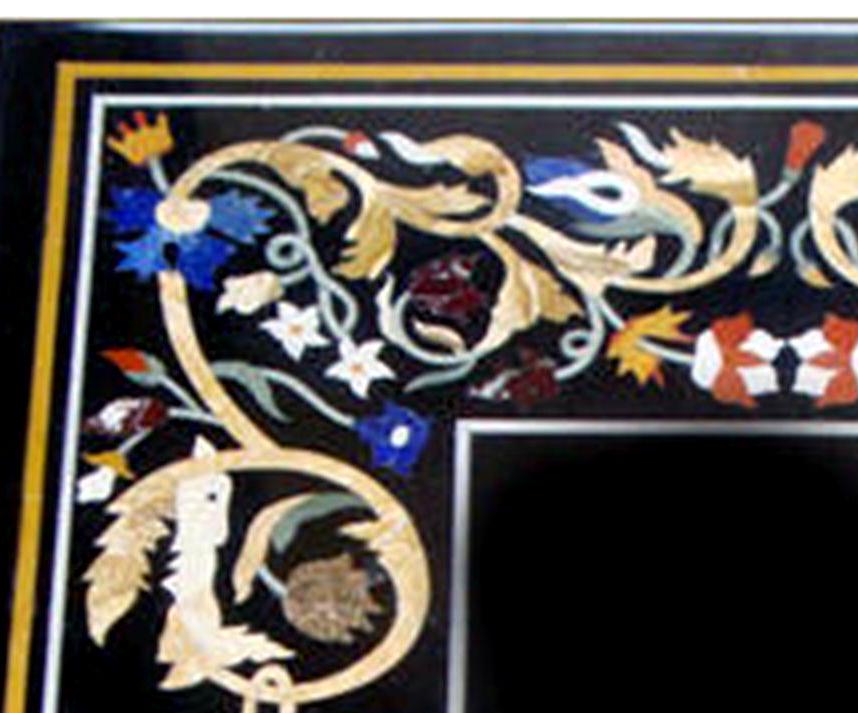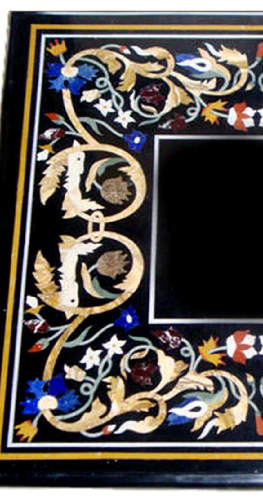 Black Marble Coffee Table Top: Handmade Inlay Border, Pietra Dura Art