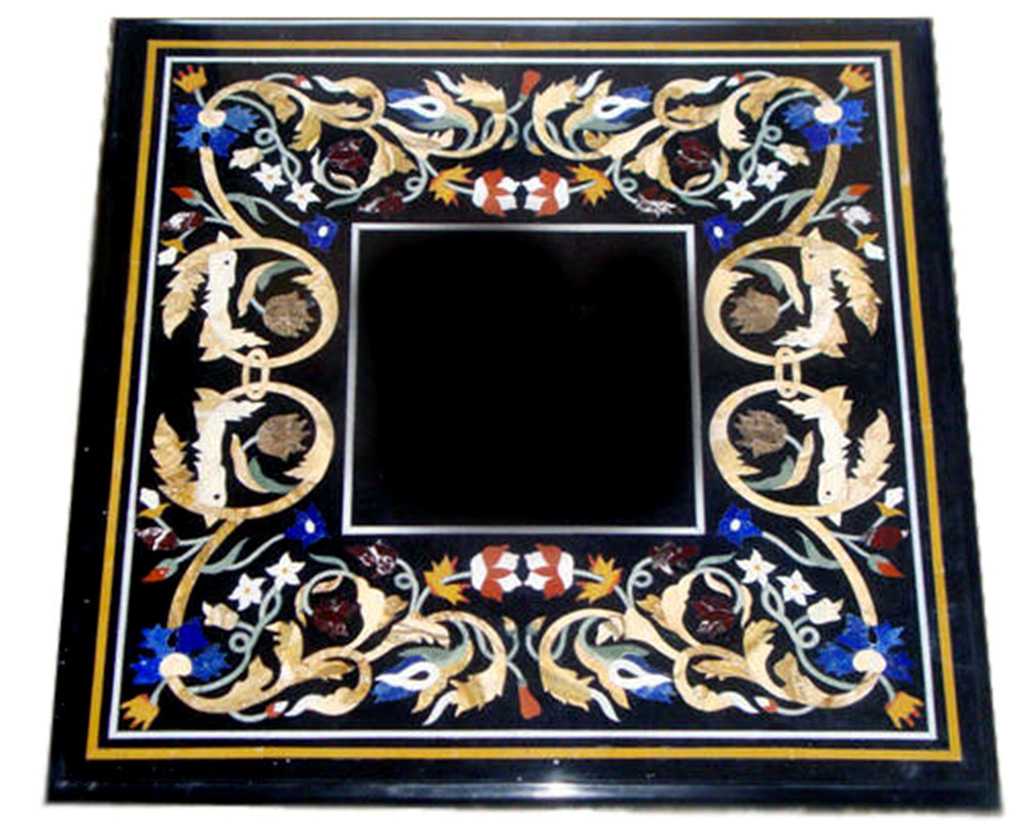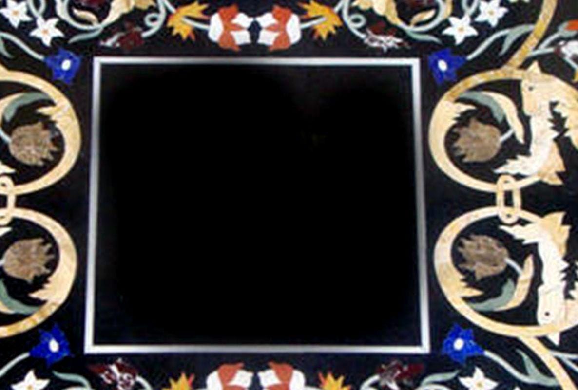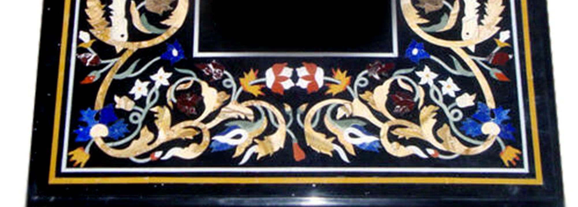 Black Marble Coffee Table Top: Handmade Inlay Border, Pietra Dura Art