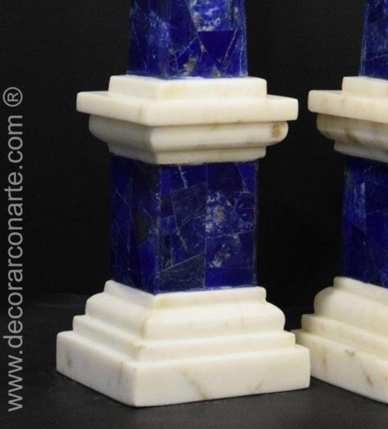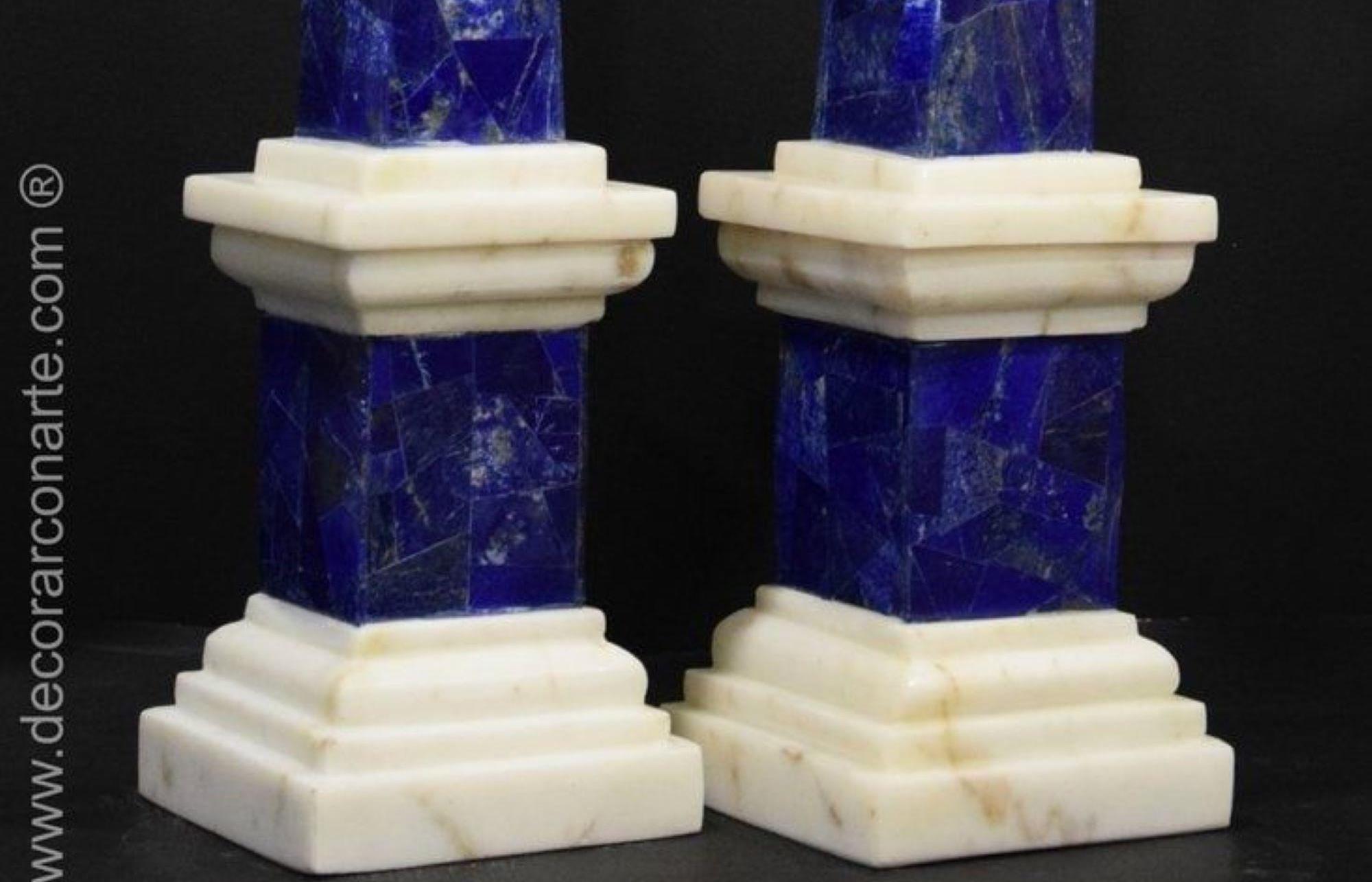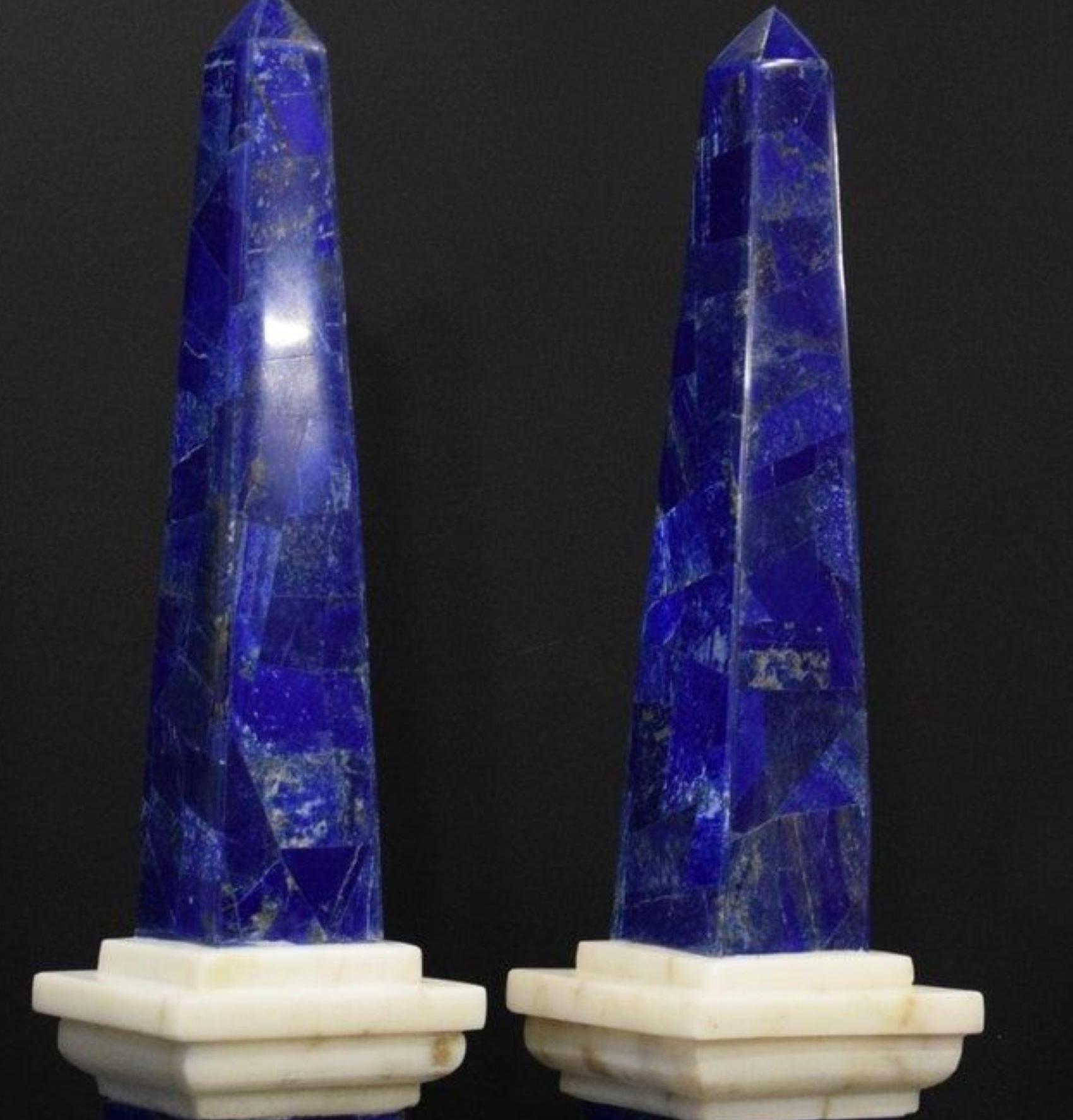 Exuding sophistication and artistry, this pair of Lapis Lazuli and Marble Obelisks brings timeless elegance to any setting. The rich royal blue of natural Lapis Lazuli is beautifully complemented by the crisp white marble base, creating a striking color contrast.