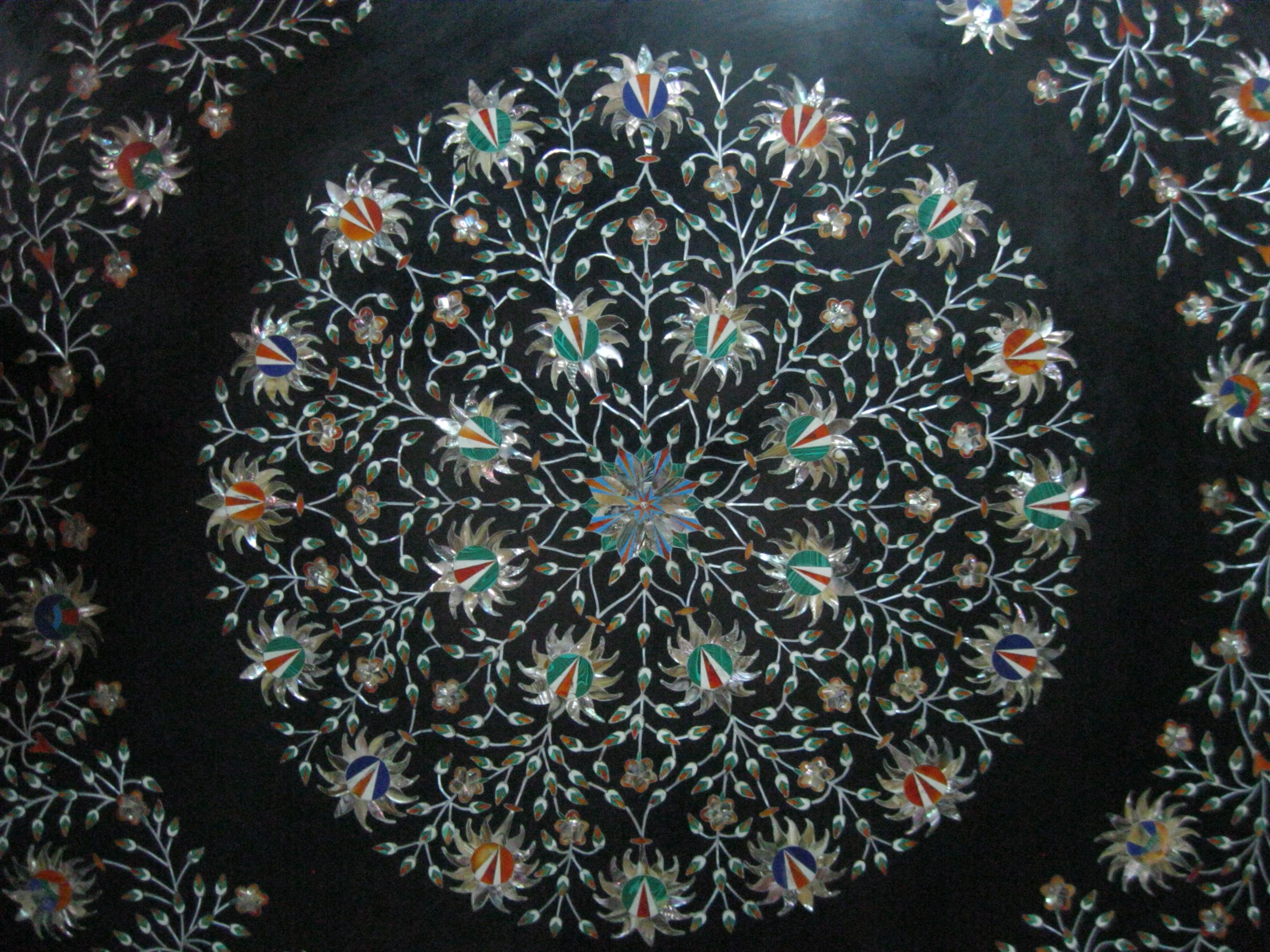 Features Pietra Dura art, showcasing intricate designs.
