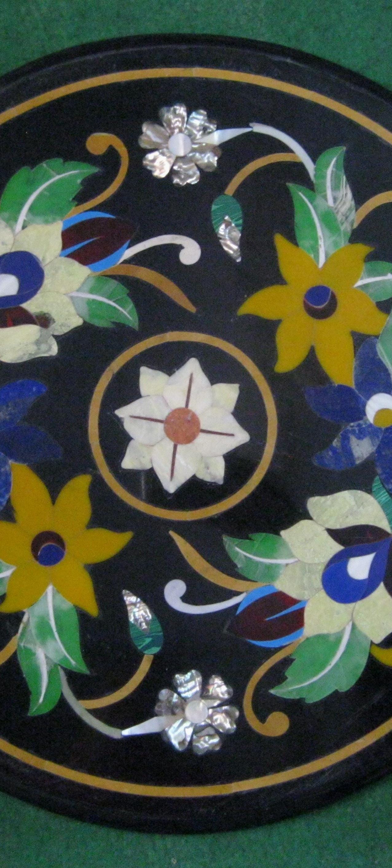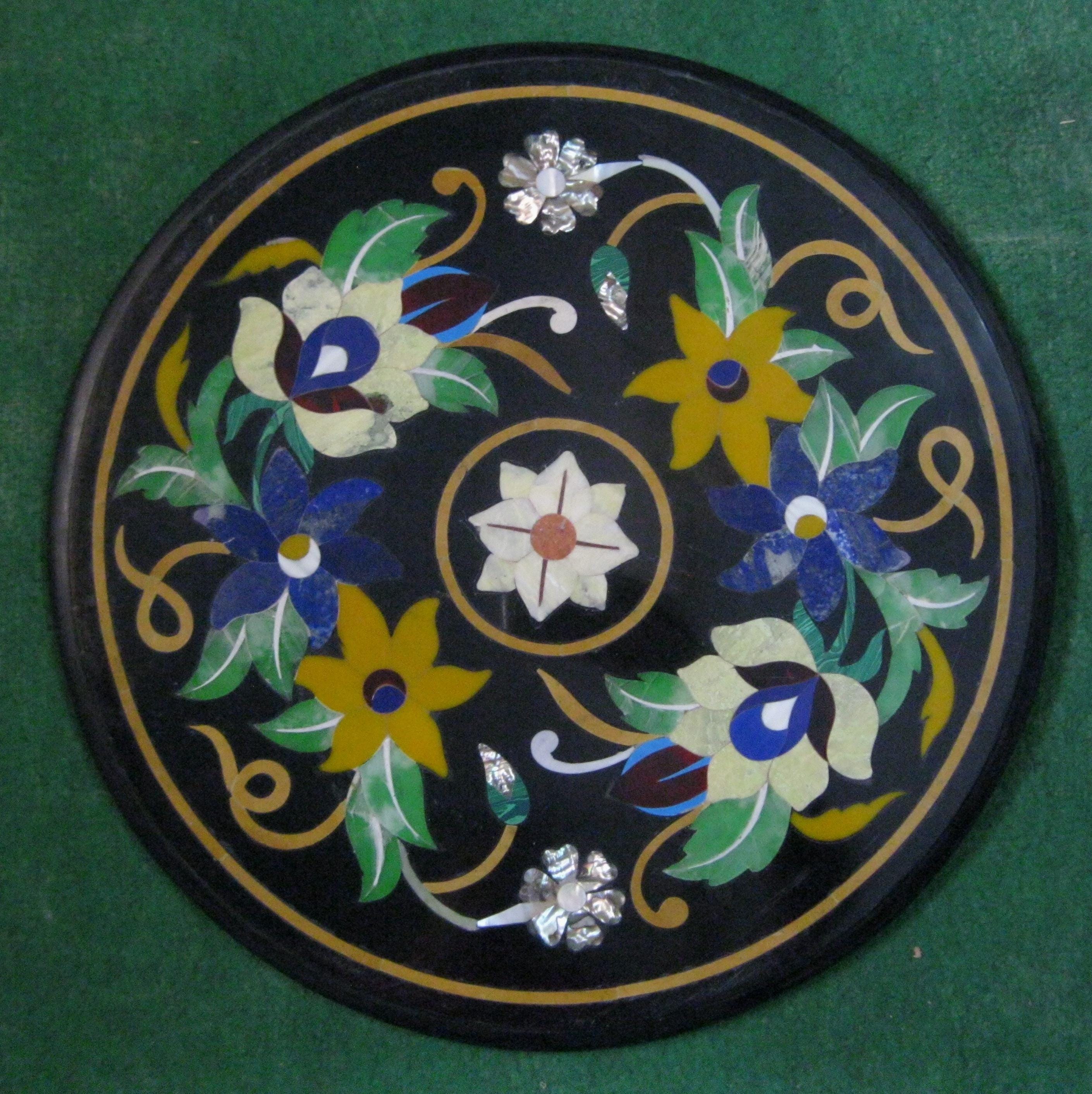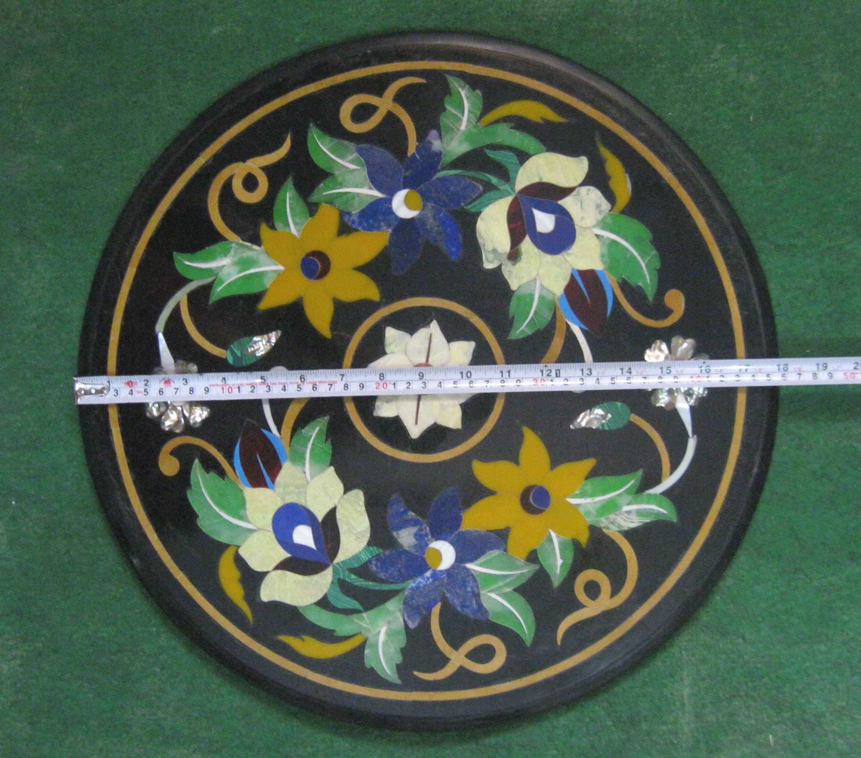 21 x 21 Handmade Pietra Dura Table, Black Round Table Top, Semi precious inlay work, Porch Decor, Coffee Table, Agra Inlay Table, Vintage