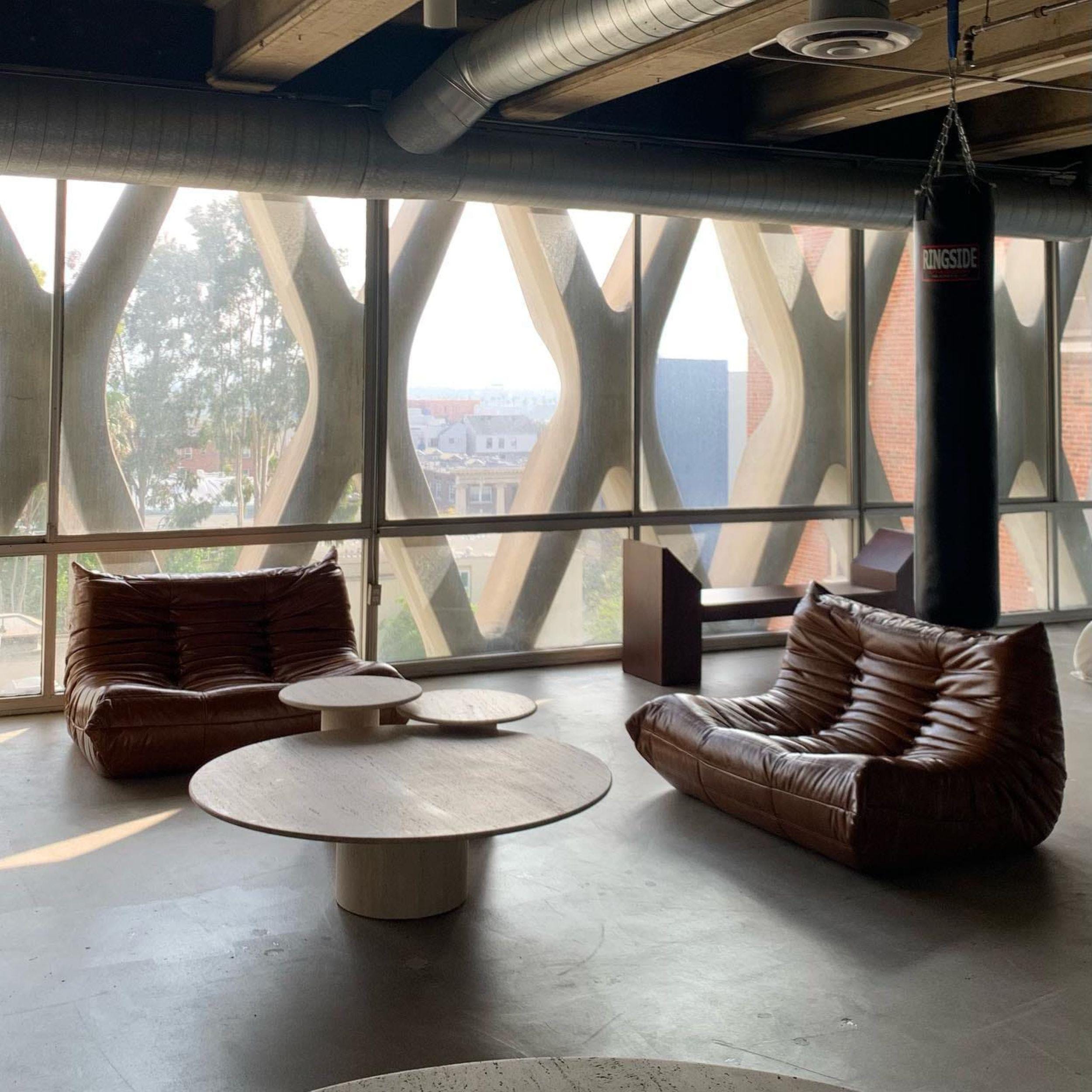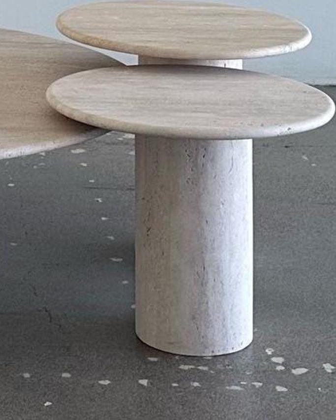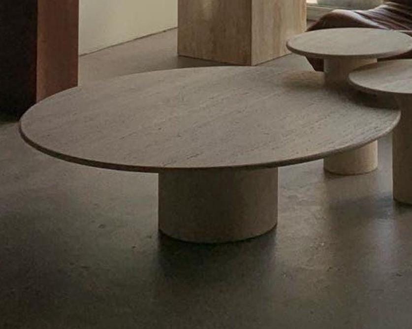 Handcrafted from 100% natural travertine stone, each piece displays soft beige hues, organic textures, and unique veining patterns, ensuring that no two tables are ever alike. The cylindrical pedestal bases paired with the smooth, round tops create a perfect harmony of strength, balance, and minimalism.