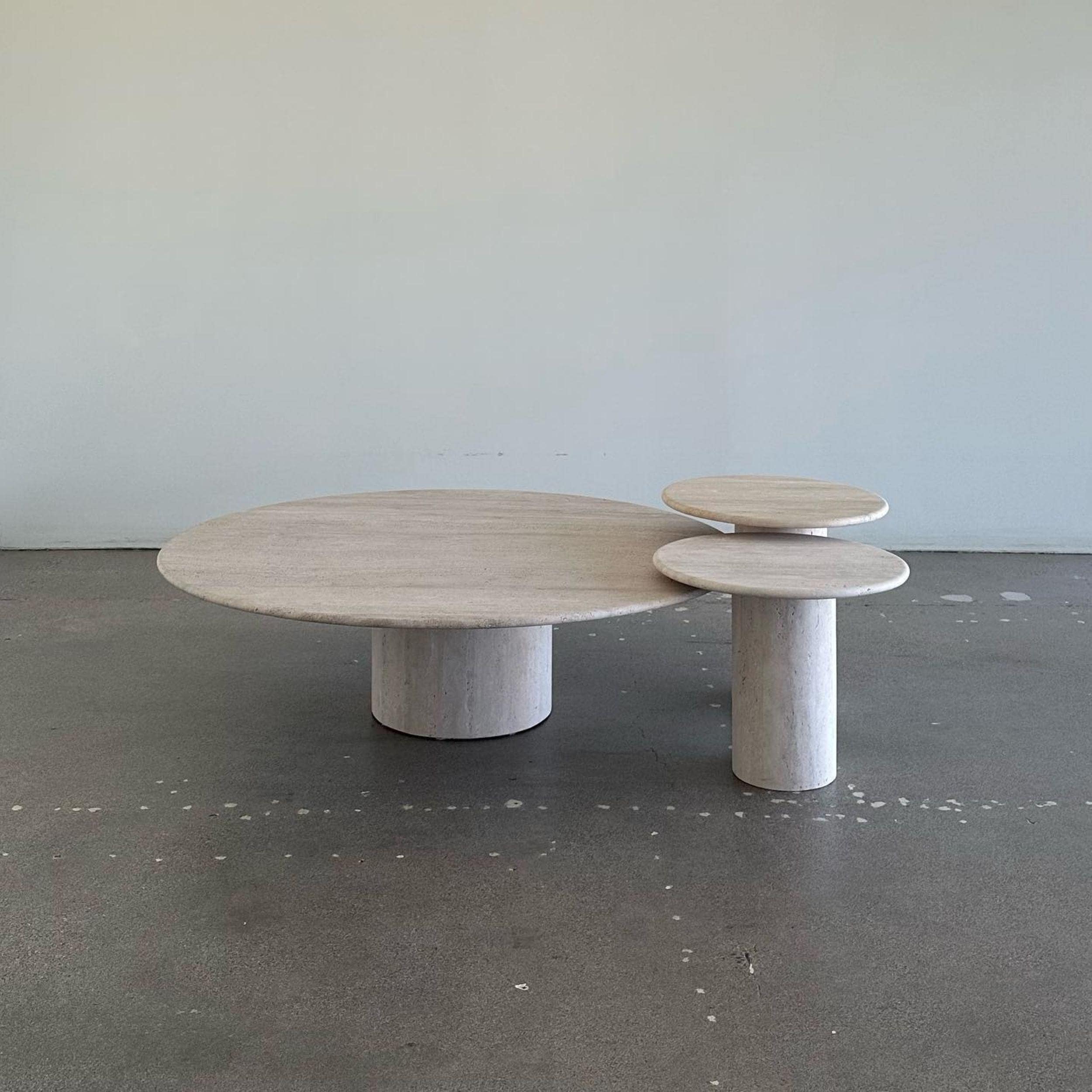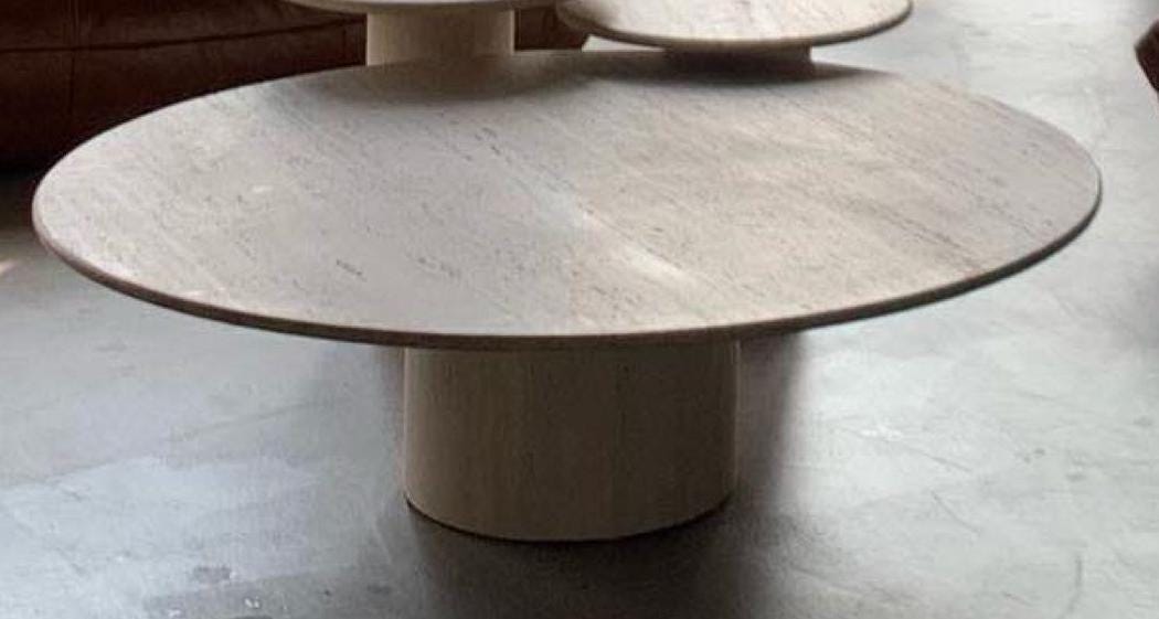 Handcrafted Travertine Coffee Table Set – Round Nesting Tables, Modern Decor