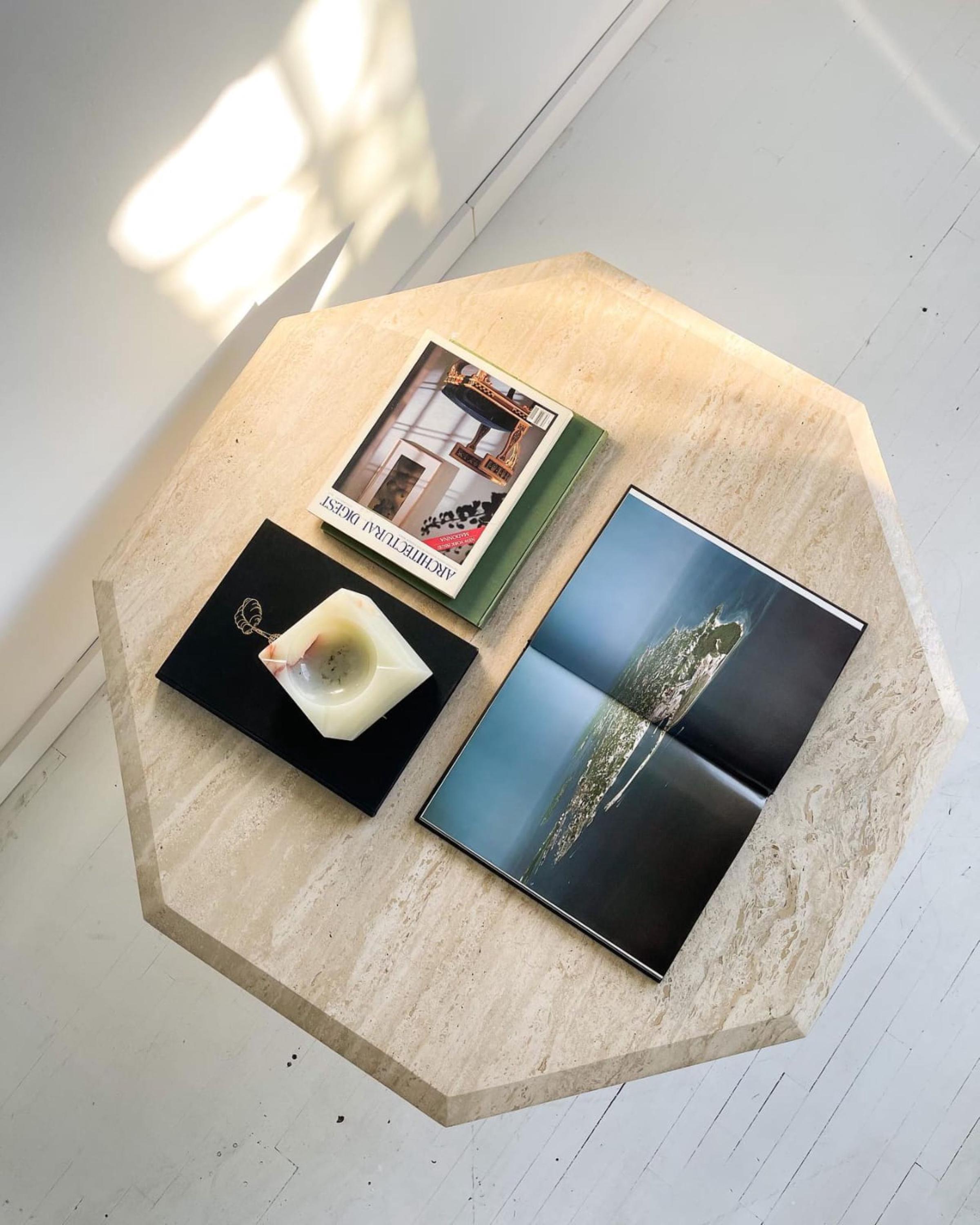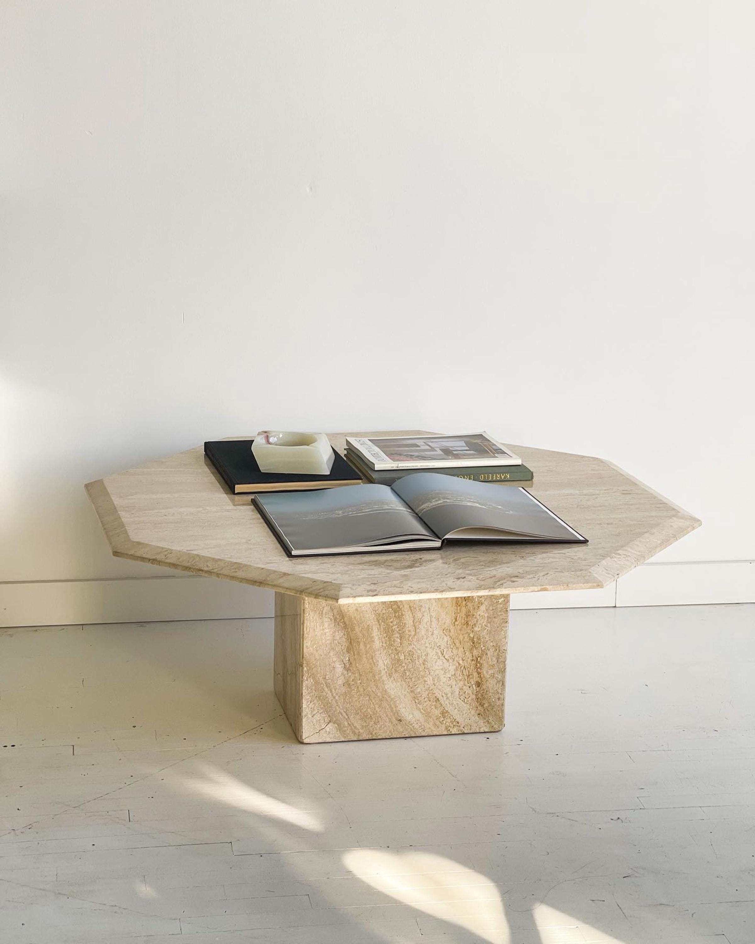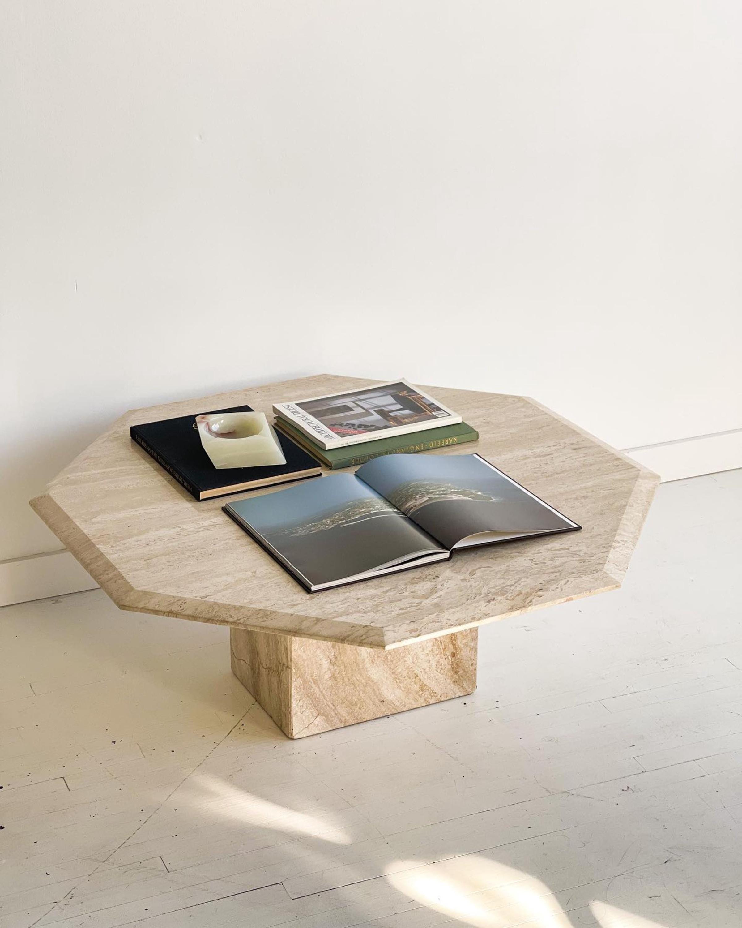 Handmade Octagonal Travertine Coffee Table – Sculptural Modern Natural Stone Centerpiece
