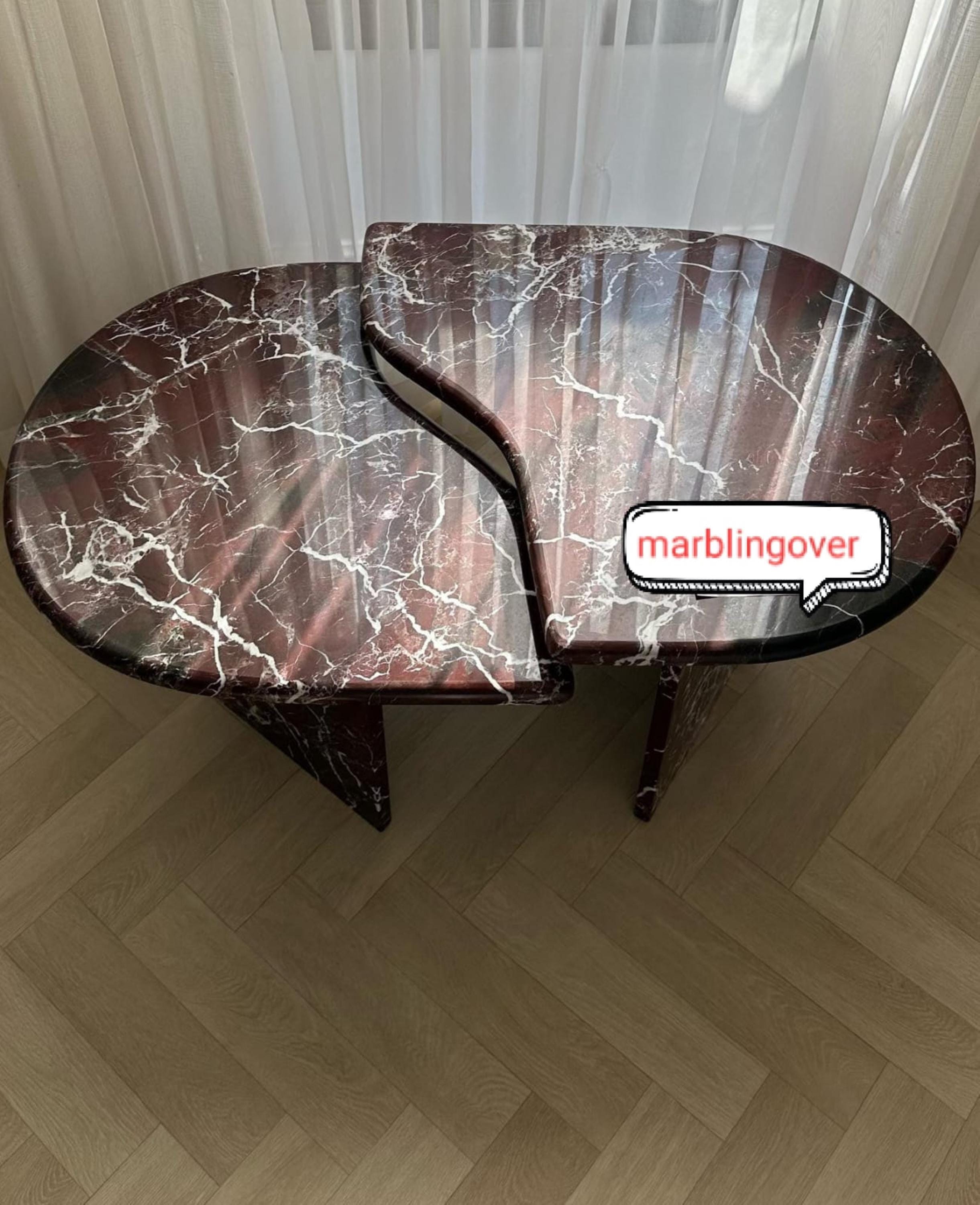 Luxury Rosso Levanto Marble Tables | Handmade Red Stone Nesting Coffee Tables