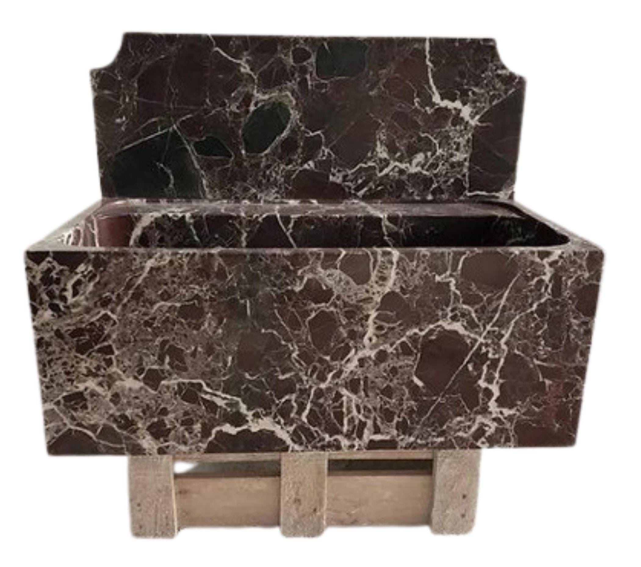 Bring bold sophistication to your bathroom or powder room with this custom Rosso Levanto marble sink, expertly hand-carved from a single block of natural stone. Known for its deep burgundy tones and striking white veining, Rosso Levanto marble delivers timeless luxury with dramatic character.