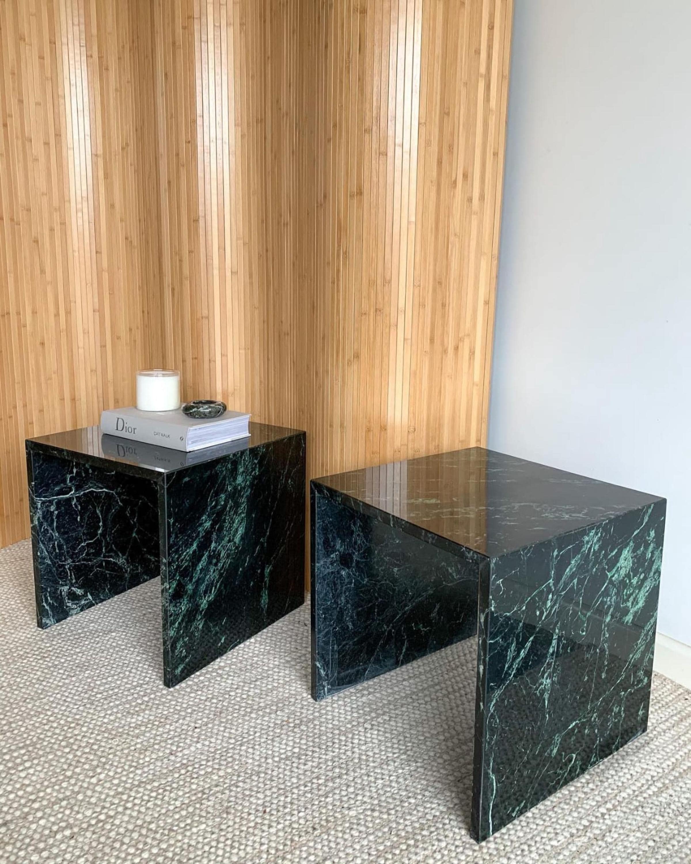 Vintage Carlo Scarpa-Inspired Green Marble Side Table – Timeless Natural Stone Craftsmanship
