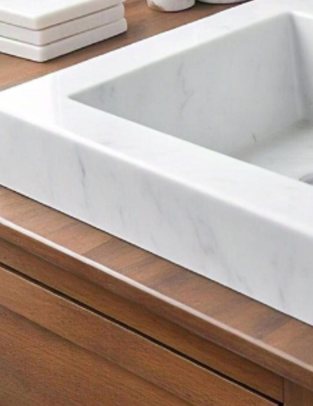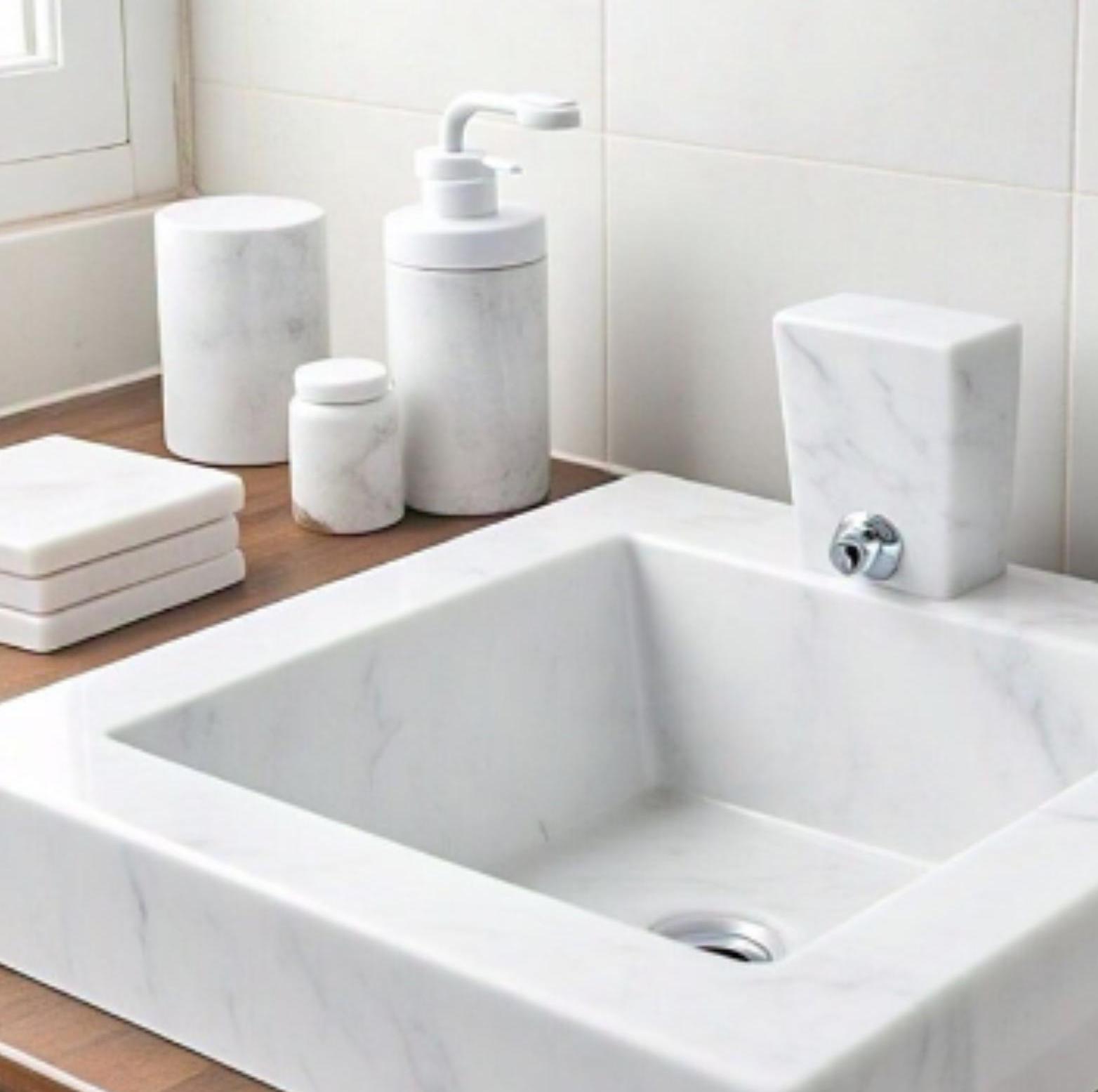 Carrara marble is carefully quarried from Italy’s famous Carrara region. Each block is skillfully cut, shaped, and polished by artisans to highlight its iconic white background and soft grey veining. The result is a luxurious, timeless stone ideal for sinks, countertops, and fine furniture.